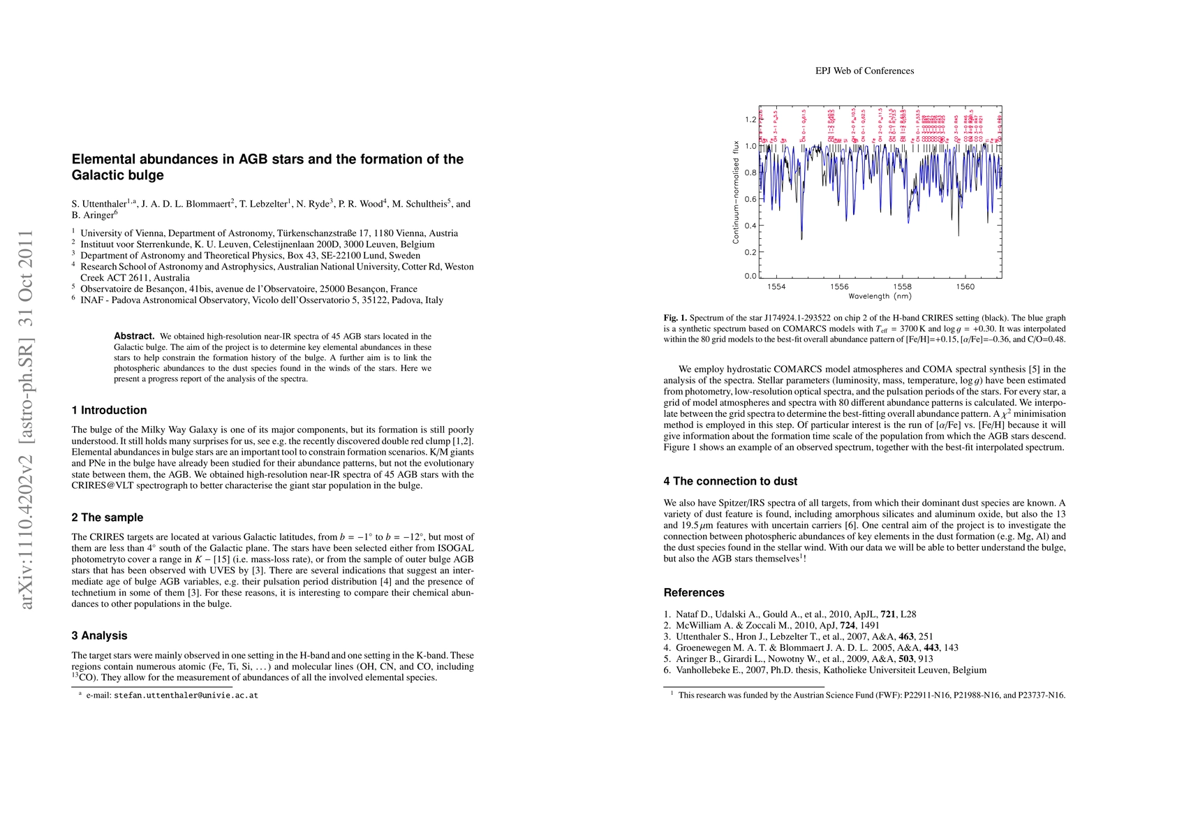 We obtained high-resolution near-IR spectra of 45 AGB stars located in the Galactic bulge. The aim of the project is to determine key elemental abundances in these stars to help constrain the formation history of the bulge. A further aim is to link the photospheric abundances to the dust species found in the winds of the stars. Here we present a progress report of the analysis of the spectra.