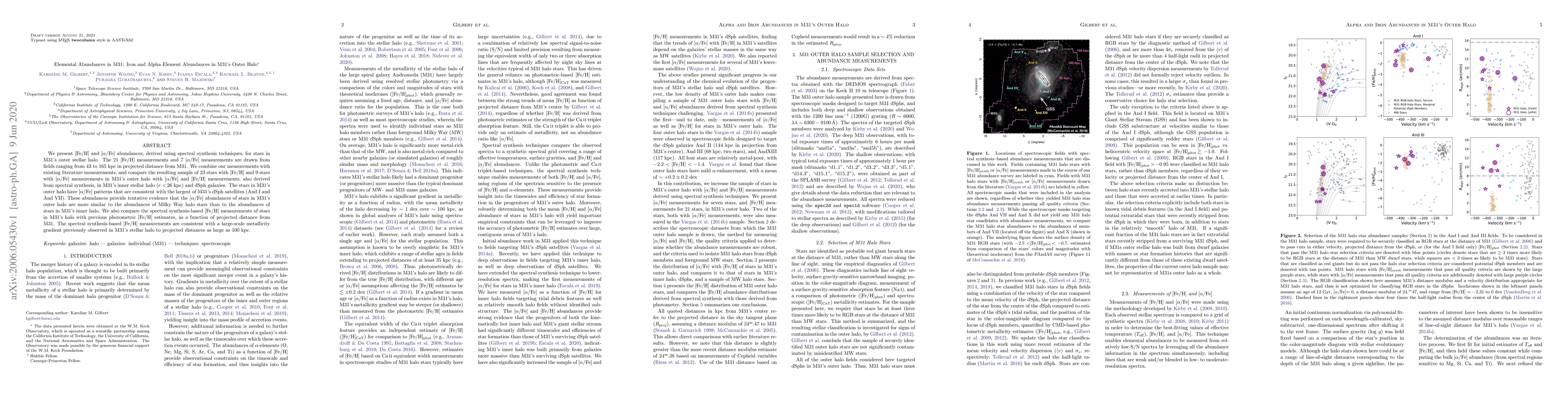 This paper reports [Fe/H] and [$\alpha$/Fe] abundances for stars in M31's outer halo, finding that their [$\alpha$/Fe] patterns resemble those of the largest M31 dSph satellites and suggest a closer similarity to Milky Way halo stars than to M31's inner halo stars. The study also confirms a large-scale metallicity gradient in M31's halo extending up to 100 kpc.