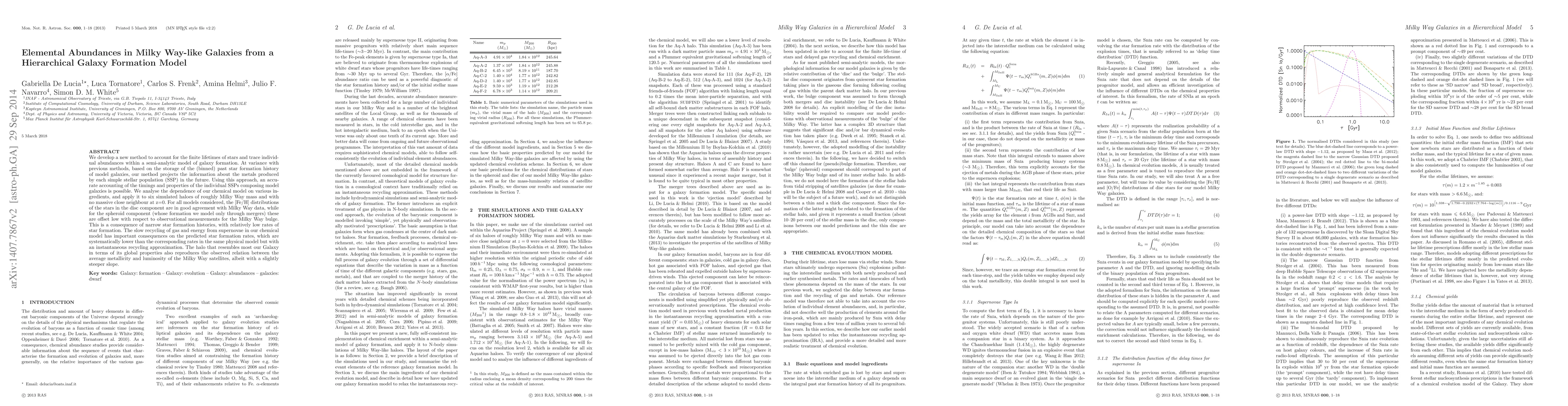 This paper introduces a new method for modeling elemental abundances in Milky Way-like galaxies, accounting for the finite lifetimes of stars and individual stellar populations. The results show good agreement with Milky Way data for disc stars but lower [Fe/H] values for the spheroid component, due to slow recycling processes.