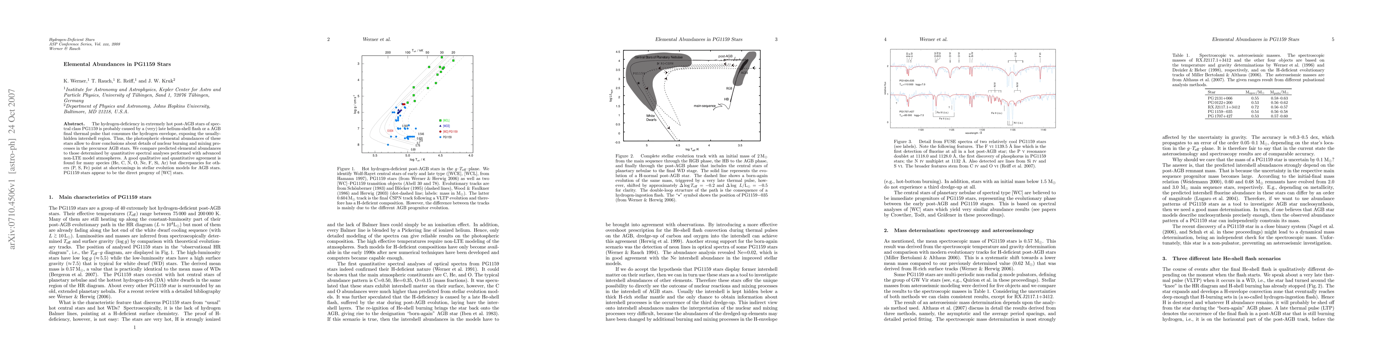 This study investigates the elemental abundances in PG1159 stars, revealing that hydrogen-deficiency is likely due to late helium-shell flashes or final thermal pulses. The findings show good agreement between predicted and observed abundances for many elements but highlight discrepancies for others, indicating limitations in current AGB stellar evolution models.