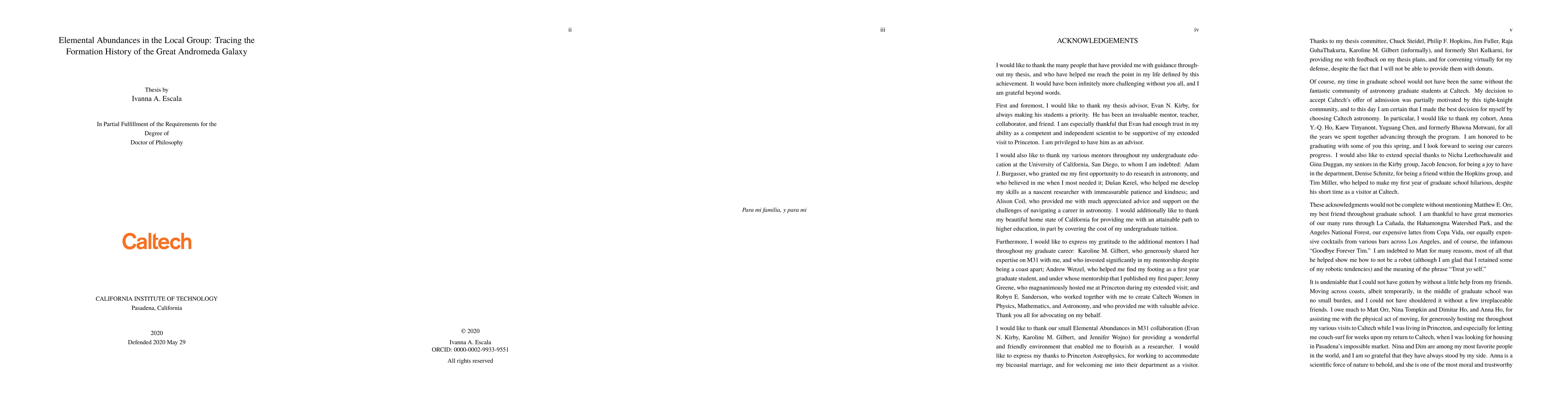 The Local Group (LG) is an environment accessible to detailed studies of galaxy formation, providing a complement to the early universe. In particular, spectroscopy of resolved stellar populations in the LG provides kinematical and chemical information for individual stars that can be used to infer the history of $L_\star$ galaxies like the Milky Way (MW) and Andromeda (M31). The Gaia revolution in the MW has enabled comprehensive observational studies of the MW's formation history. The exquisite detail in which the MW has been studied is currently not achievable in any other $L_\star$ galaxy. For this reason, the MW is a template for our understanding of galaxy formation. M31 is the only external galaxy that we can currently hope study in a level of detail approaching the MW. Studies of M31 have recently taken on greater significance, given the growing body of evidence that its formation history differs substantially from that of the MW. In an era of limited information about elemental abundances in M31, I have developed a technique to apply spectral synthesis to low-resolution stellar spectroscopy in order to measure abundances for individual giant stars in distant LG galaxies. Through undertaking the largest deep, spectroscopic survey of M31 to date with my collaborators, this has resulted in the first measurements of the elemental abundances in the inner stellar halo and stellar disk of M31, and the largest homogeneous catalog of elemental abundances in M31. With this foundational work, we have opened the doors to detailed studies of the chemical composition of M31. Now, we can begin to ask--and answer--what differences in the elemental abundances of the M31 and the MW imply for our knowledge of galaxy formation in the broader universe.