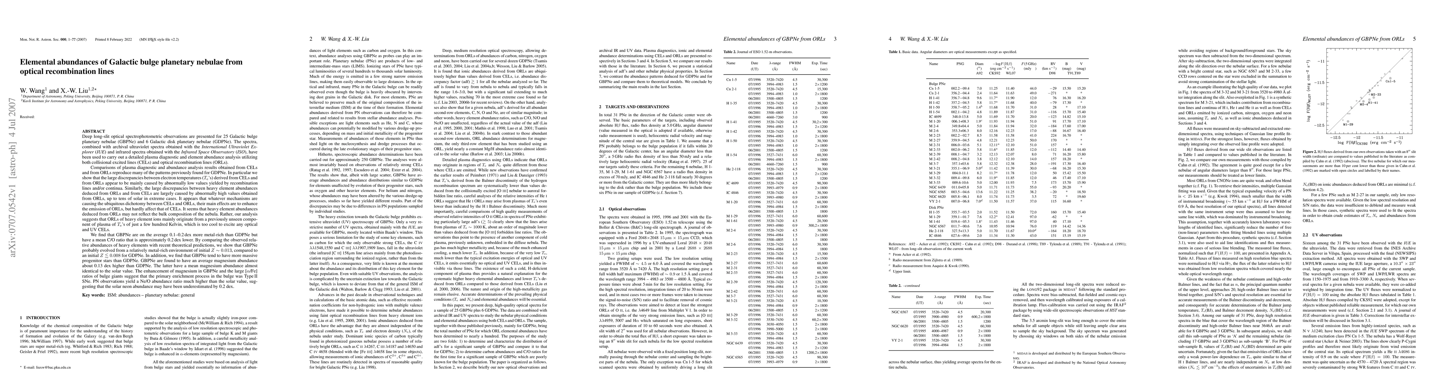 This study analyzes elemental abundances in 25 Galactic bulge planetary nebulae (GBPNe) using optical recombination lines (ORLs) and compares them to collisional excited lines (CELs). It finds that ORLs often yield anomalously high heavy element abundances, suggesting ORLs may originate from a cooler plasma component not detected by CELs.