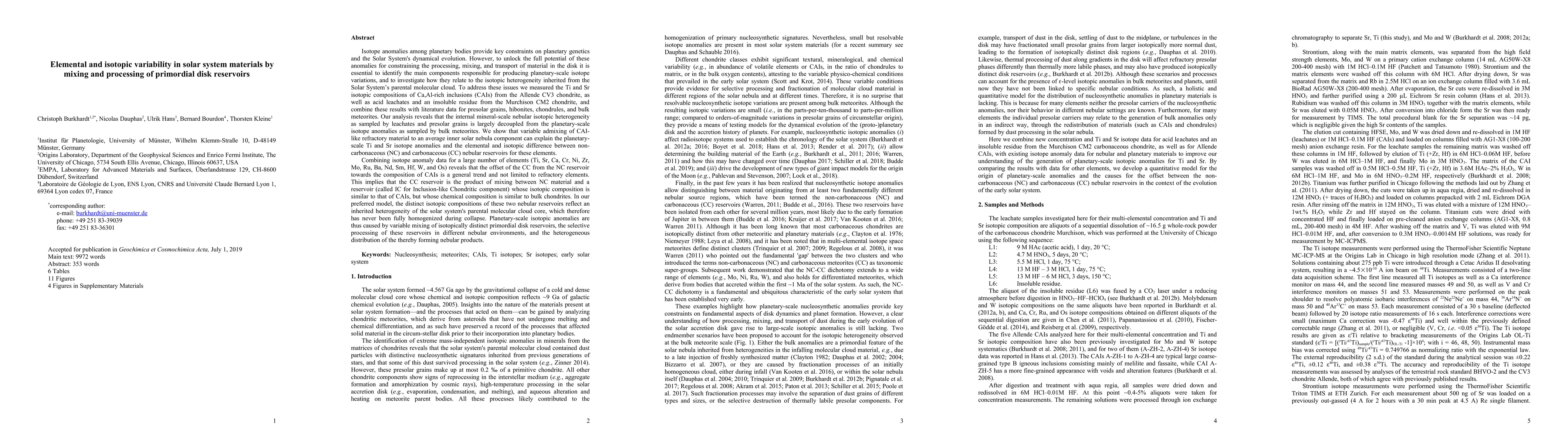 This paper investigates the isotopic variability in solar system materials, revealing that planetary-scale isotope anomalies arise from the mixing of distinct primordial disk reservoirs. The study finds that non-carbonaceous and carbonaceous meteorites differ due to the mixing of nebular reservoirs with compositions similar to CAIs and bulk chondrites, respectively, indicating an unhomogenized parental molecular cloud.