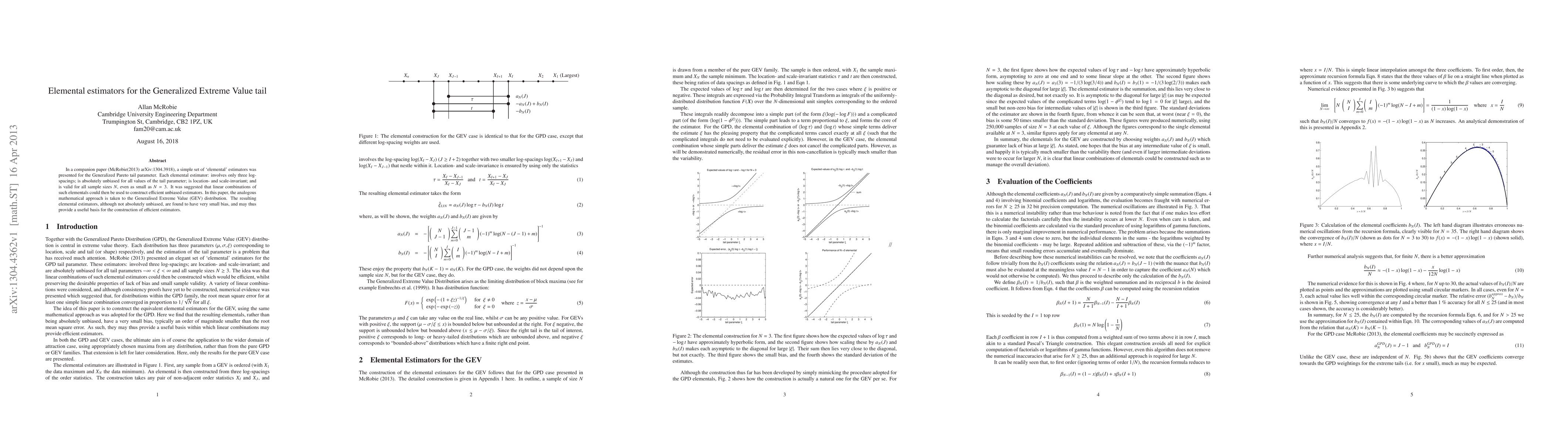 In a companion paper (McRobie(2013) arxiv:1304.3918), a simple set of `elemental' estimators was presented for the Generalized Pareto tail parameter. Each elemental estimator: involves only three log-spacings; is absolutely unbiased for all values of the tail parameter; is location- and scale-invariant; and is valid for all sample sizes $N$, even as small as $N= 3$. It was suggested that linear combinations of such elementals could then be used to construct efficient unbiased estimators. In this paper, the analogous mathematical approach is taken to the Generalised Extreme Value (GEV) distribution. The resulting elemental estimators, although not absolutely unbiased, are found to have very small bias, and may thus provide a useful basis for the construction of efficient estimators.