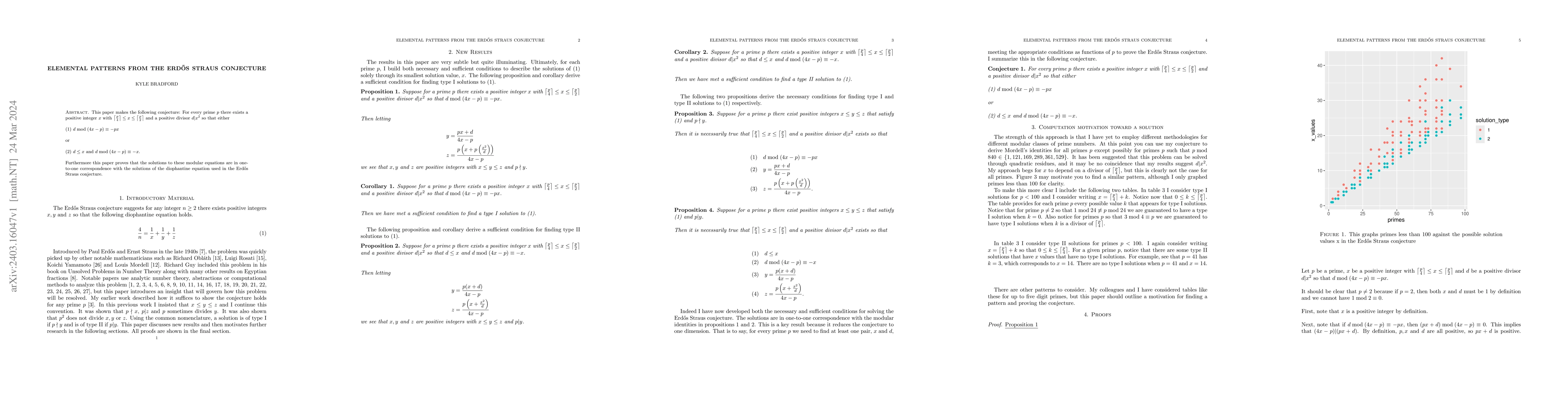 This paper makes the following conjecture: For every prime $p$ there exists a positive integer $x$ with $\left\lceil \frac{p}{4} \right\rceil \leq x \leq \left\lceil \frac{p}{2} \right\rceil$ and a positive divisor $d|x^2$ so that either: (1) $ d \bmod \left( 4x - p \right) \equiv -px$; or (2) $d \leq x$ and $ d \bmod \left( 4x - p \right) \equiv -x$. Furthermore this paper proves that the solutions to these modular equations are in one-to-one correspondence with the solutions of the diophantine equation used in the Erd\H{o}s Straus conjecture.