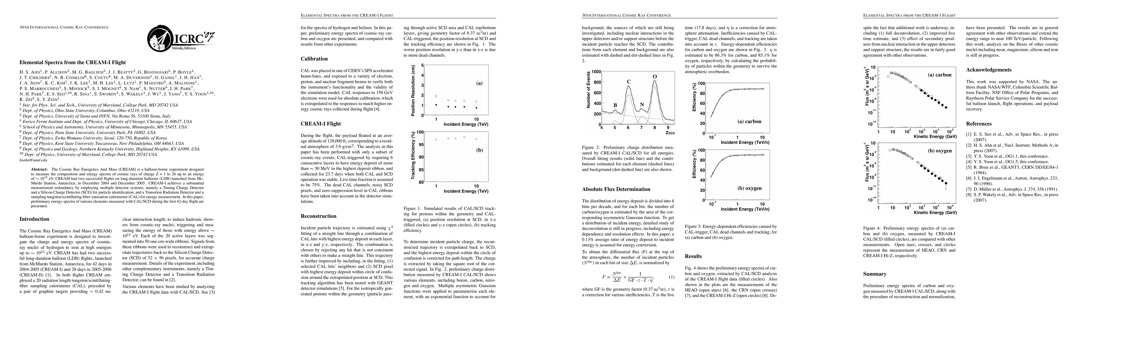 This paper presents preliminary energy spectra of various elements from the CREAM-I balloon experiment, which measures cosmic ray composition and energy spectra using multiple detector systems, including a Silicon Charge Detector and a calorimeter. The results are from the first 42-day flight in December 2004.