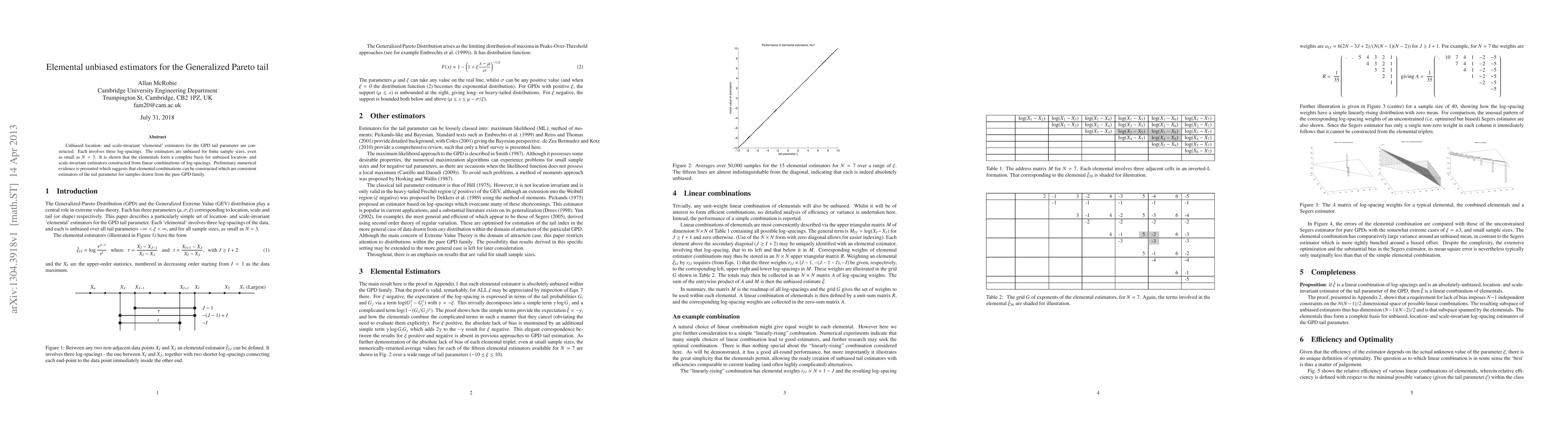 Unbiased location- and scale-invariant `elemental' estimators for the GPD tail parameter are constructed. Each involves three log-spacings. The estimators are unbiased for finite sample sizes, even as small as N=3. It is shown that the elementals form a complete basis for unbiased location- and scale-invariant estimators constructed from linear combinations of log-spacings. Preliminary numerical evidence is presented which suggests that elemental combinations can be constructed which are consistent estimators of the tail parameter for samples drawn from the pure GPD family.