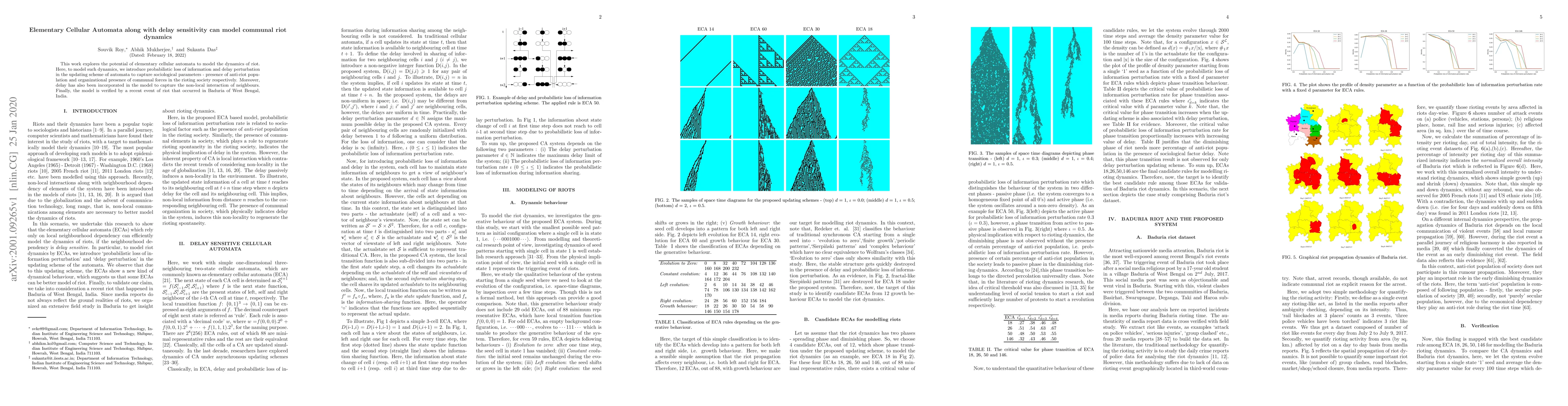 Researchers used elementary cellular automata to model communal riot dynamics, incorporating delay sensitivity and sociological parameters like anti-riot populations and organizational forces. The model was verified using a recent Indian riot event.