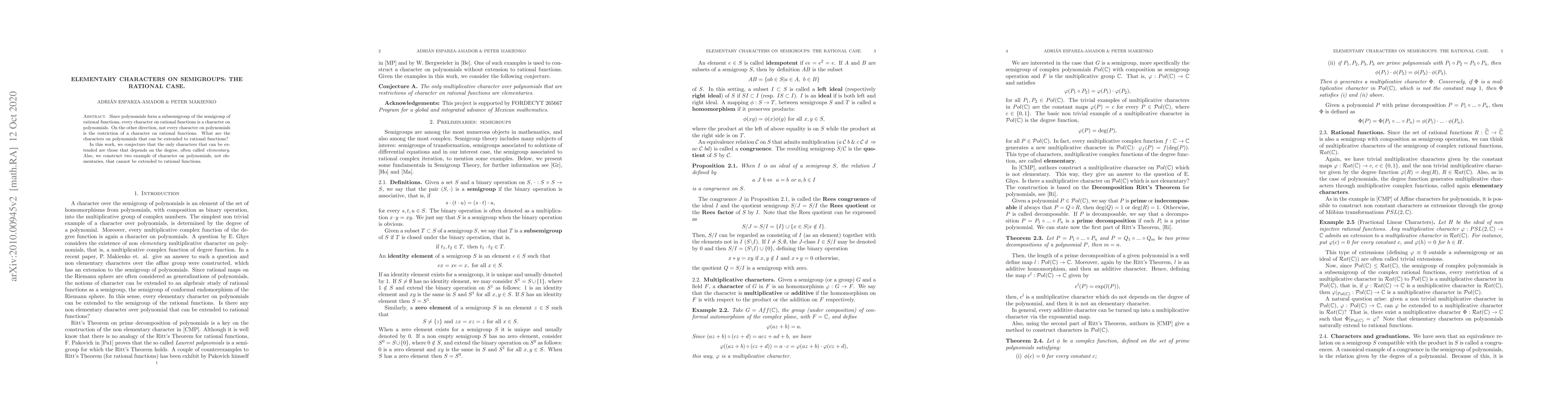 This paper explores characters on polynomials and rational functions, hypothesizing that only "elementary" characters, which depend on degree, can be extended from polynomials to rational functions. It also provides examples of non-elementary characters on polynomials that cannot be extended.