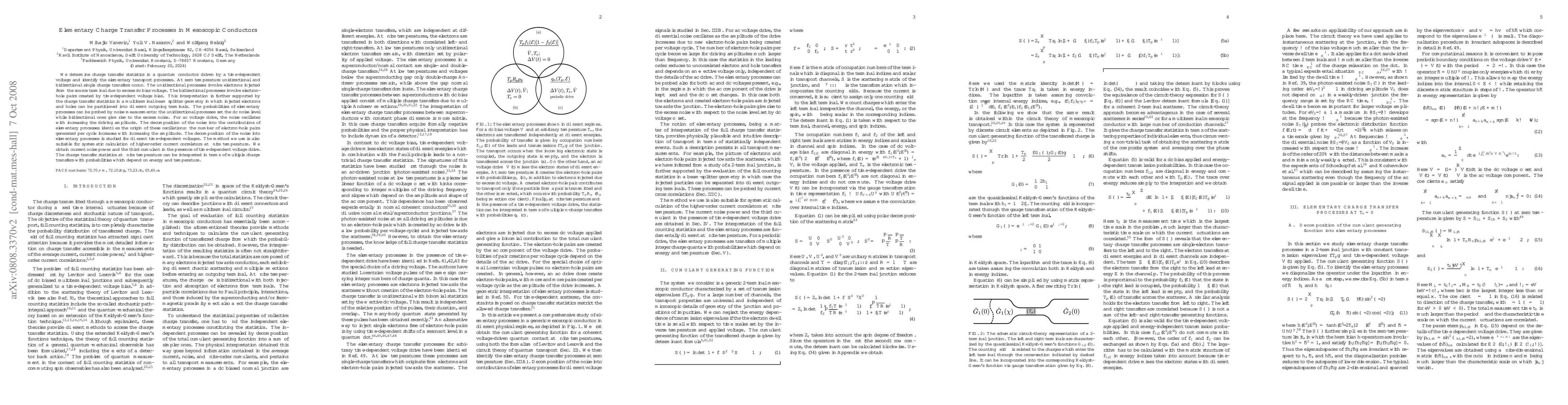 This paper studies charge transfer processes in quantum conductors driven by time-dependent voltage, identifying elementary transport processes and their effects on noise measurements, which can be used to probe the origin of oscillations with increasing driving amplitude.