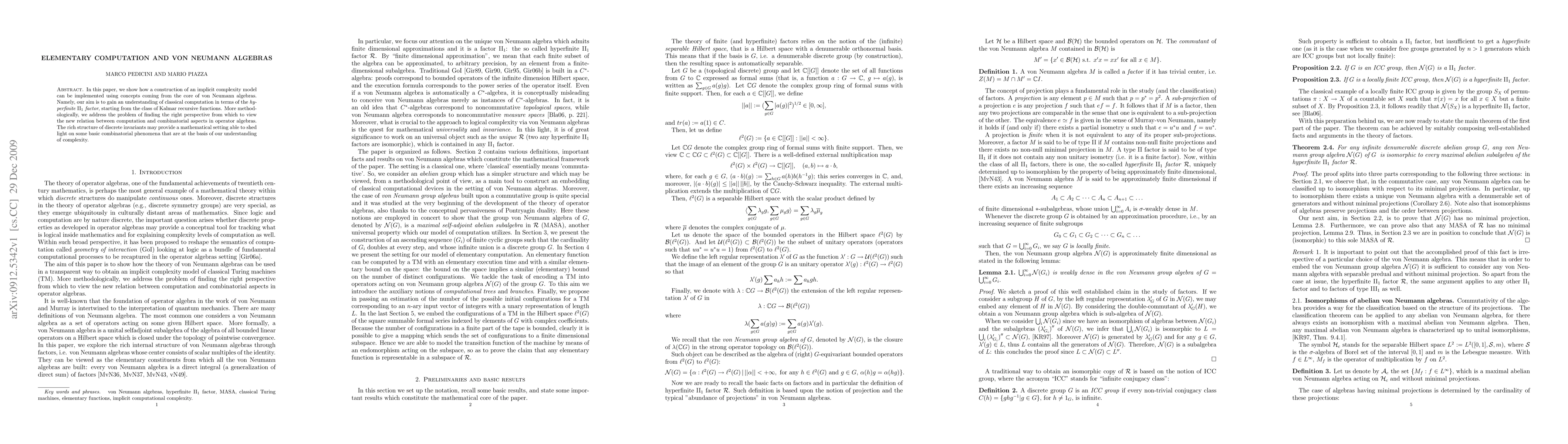 In this paper, we show how a construction of an implicit complexity model can be implemented using concepts coming from the core of von Neumann algebras. Namely, our aim is to gain an understanding of classical computation in terms of the hyperfinite $\mathrm{II}_1$ factor, starting from the class of Kalmar recursive functions. More methodologically, we address the problem of finding the right perspective from which to view the new relation between computation and combinatorial aspects in operator algebras. The rich structure of discrete invariants may provide a mathematical setting able to shed light on some basic combinatorial phenomena that are at the basis of our understanding of complexity.