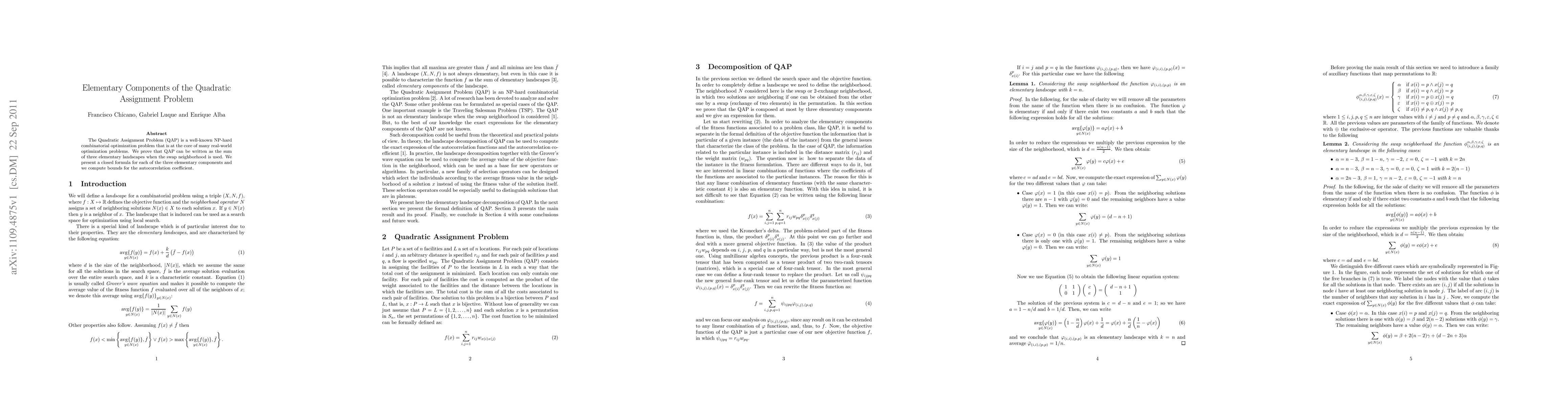 The Quadratic Assignment Problem (QAP) is an NP-hard combinatorial optimization problem. The paper proves that QAP can be decomposed into three elementary landscapes, providing closed formulas for each component and computing bounds for the autocorrelation coefficient.