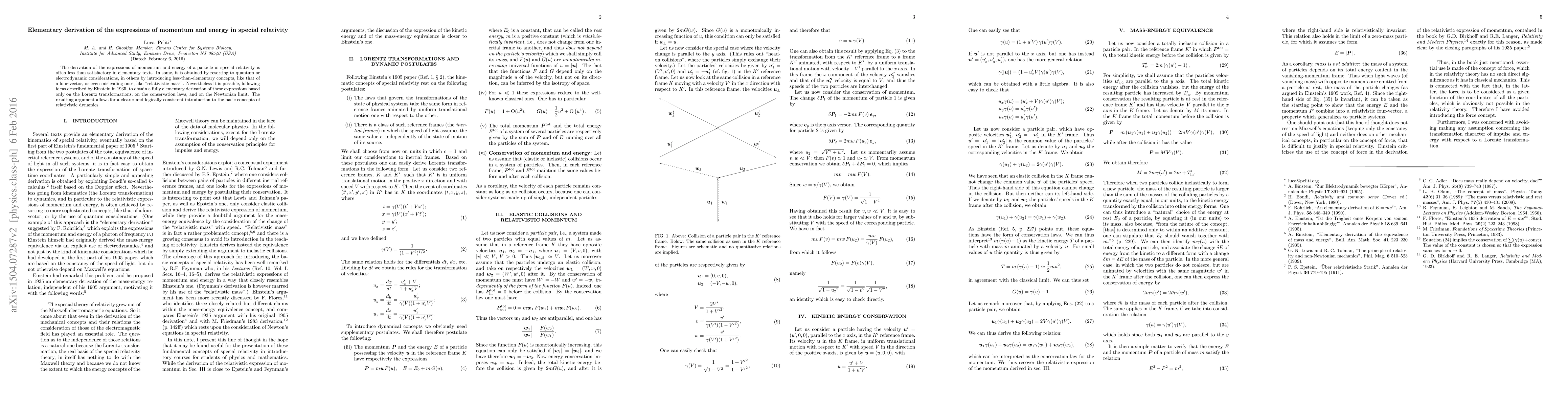 This paper provides a straightforward derivation of the expressions for momentum and energy in special relativity, relying solely on Lorentz transformations and conservation principles, avoiding complex electrodynamic or quantum concepts. It also derives the famous $E=mc^2$ formula using elementary methods inspired by Epstein, Einstein, and Feynman.