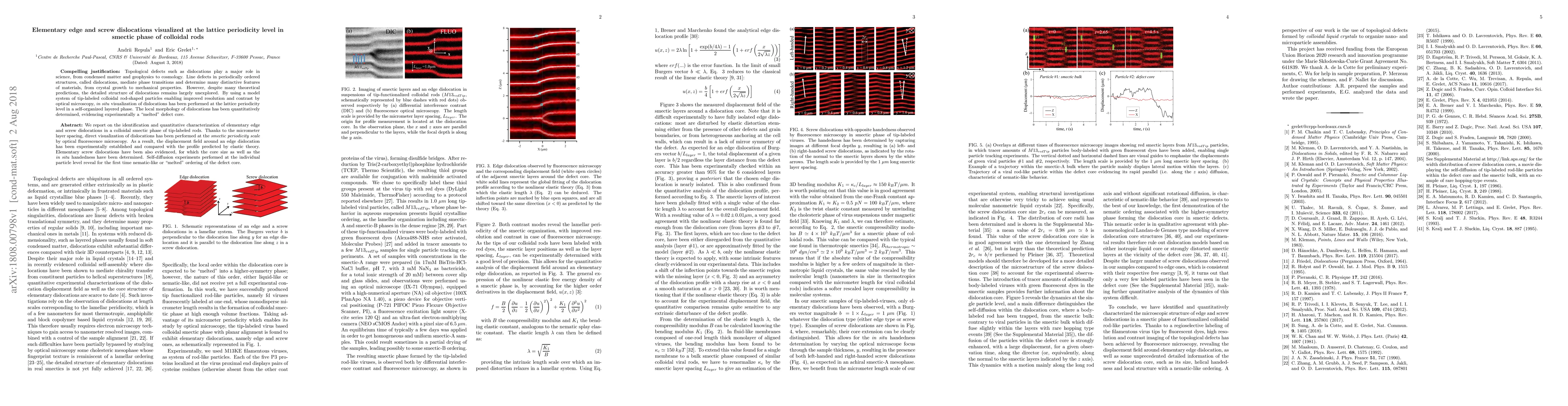 This paper identifies and characterizes elementary edge and screw dislocations in a colloidal smectic phase using optical fluorescence microscopy, revealing the displacement field around edge dislocations and confirming the presence of nematic-like ordering in defect cores. The study also determines the core size and handedness of screw dislocations.