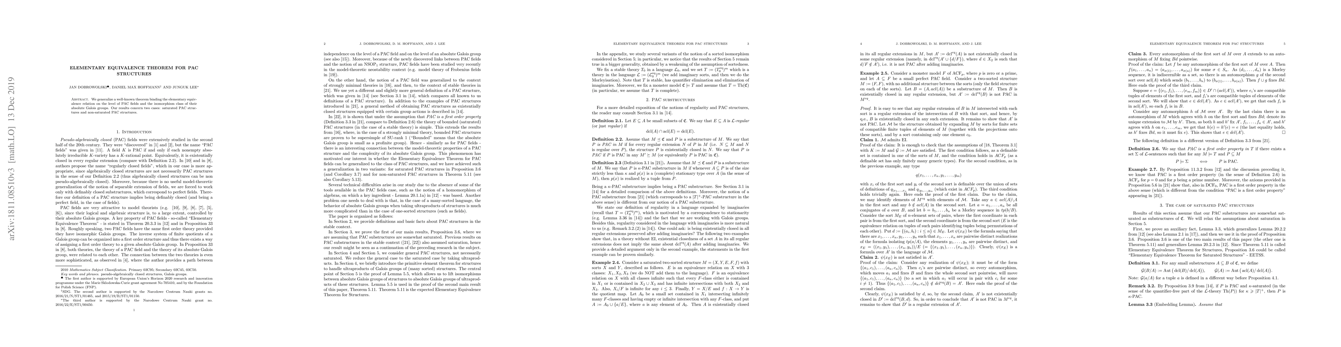 This paper generalizes the Elementary Equivalence Theorem for PAC fields, establishing connections between the elementary equivalence of PAC structures and the isomorphism classes of their absolute Galois groups, with specific results for both saturated and non-saturated PAC structures.