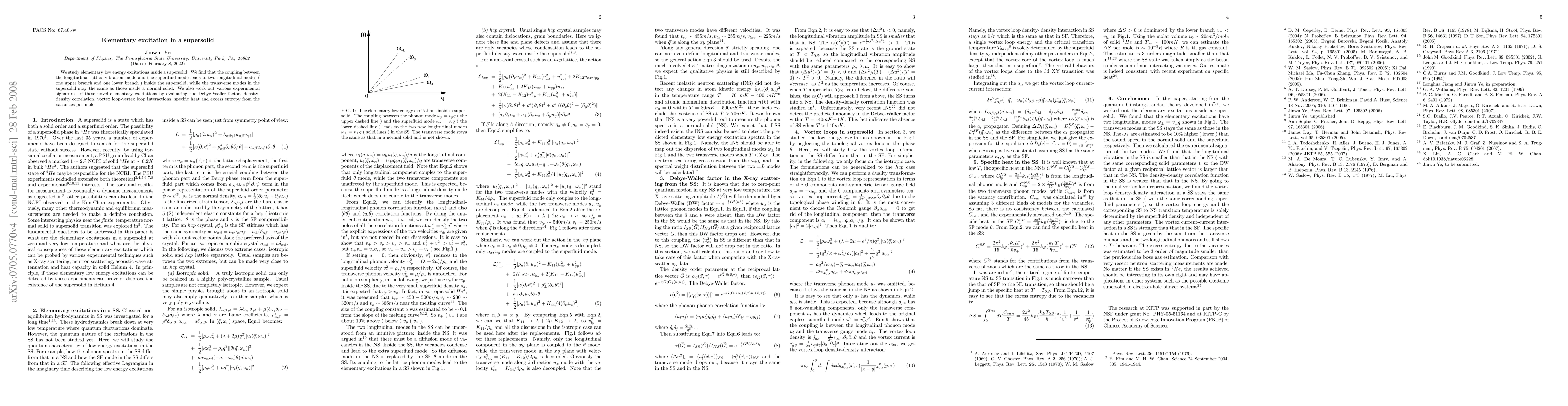 We study elementary low energy excitations inside a supersolid. We find that the coupling between the longitudinal lattice vibration mode and the superfluid mode leads to two longitudinal modes (one upper branch and one lower branch) inside the supersolid, while the transverse modes in the supersolid stay the same as those inside a normal solid. We also work out various experimental signatures of these novel elementary excitations by evaluating the Debye-Waller factor, density-density correlation, vortex loop-vertex loop interactions, specific heat and excess entropy from the vacancies per mole.