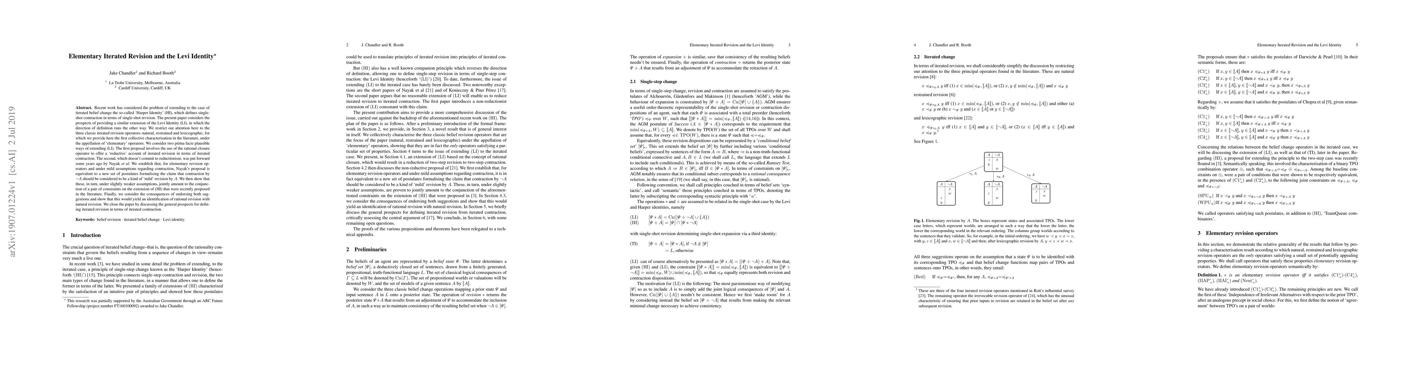 The paper provides the first collective characterization of elementary iterated revision operators and establishes equivalences between different proposals for extending the Levi Identity to iterated belief revision.