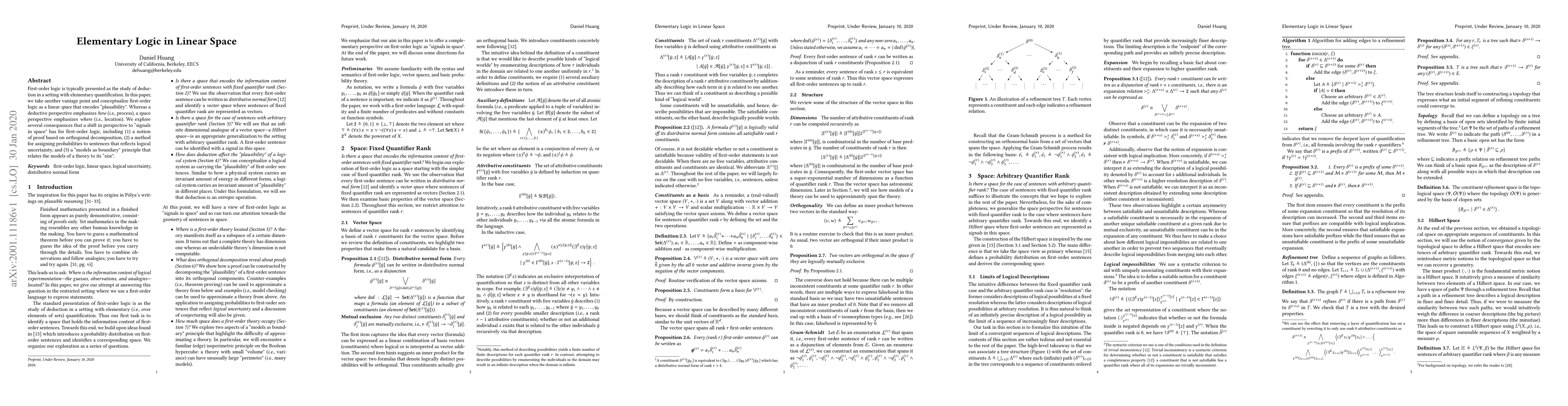 First-order logic is typically presented as the study of deduction in a setting with elementary quantification. In this paper, we take another vantage point and conceptualize first-order logic as a linear space that encodes "plausibility". Whereas a deductive perspective emphasizes how (i.e., process), a space perspective emphasizes where (i.e., location). We explore several consequences that a shift in perspective to "signals in space" has for first-order logic, including (1) a notion of proof based on orthogonal decomposition, (2) a method for assigning probabilities to sentences that reflects logical uncertainty, and (3) a "models as boundary" principle that relates the models of a theory to its "size".