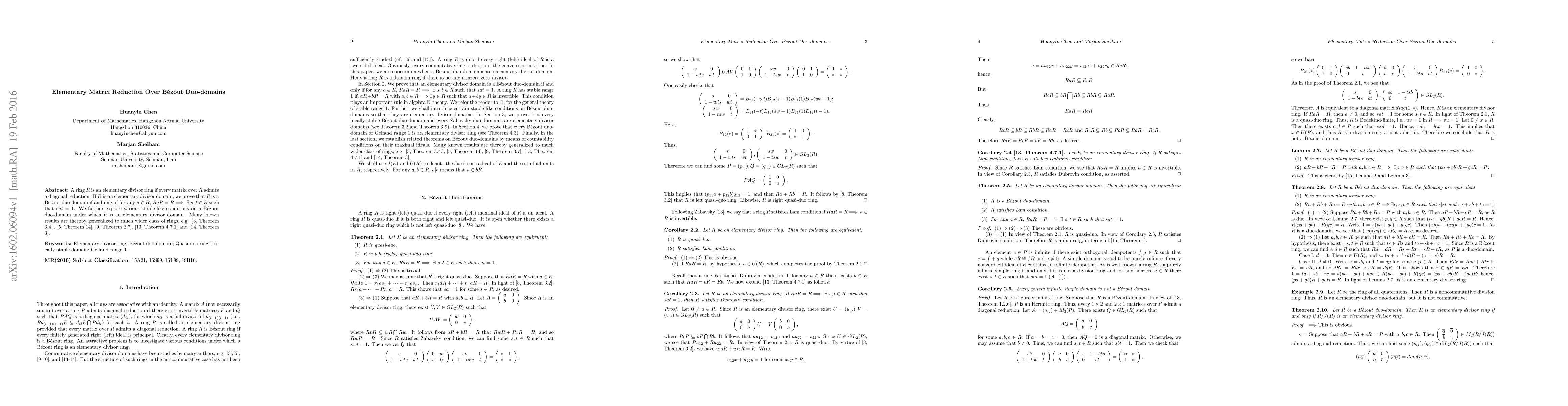 This paper investigates conditions under which Bezout duo-domains become elementary divisor rings, allowing matrices over these domains to undergo diagonal reduction. It generalizes several established results to a broader class of rings.