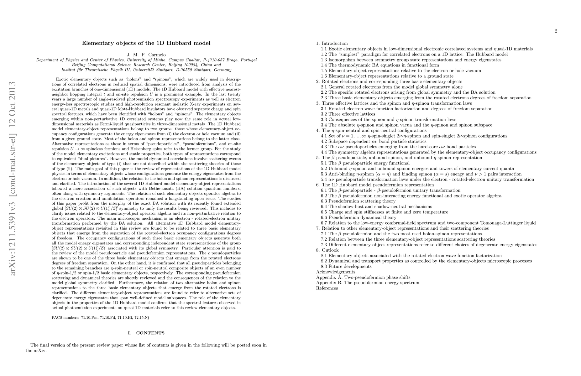 Exotic elementary objects such as "holons" and "spinons", which are widely used in descriptions of correlated electrons in reduced spatial dimensions, were introduced from analysis of the excitation branches of one-dimensional (1D) models. The 1D Hubbard model with effective nearest-neighbor hopping integral t and on-site repulsion U is a prominent example. In the last twenty years a large number of angle-resolved photoemission spectroscopy experiments as well as electron energy-loss spectroscopic studies and high-resolution resonant inelastic X-ray experiments on several quasi-1D metals and quasi-1D Mott-Hubbard insulators have observed separate charge and spin spectral features, which have been identified with "holons" and "spinons". The elementary objects emerging within non-perturbative 1D correlated systems play now the same role in actual low-dimensional materials as Fermi-liquid quasiparticles in three-dimensional metals. The main goal of this paper is the review of representations of the 1D Hubbard model physics in terms of elementary objects whose configurations generate the energy eigenstates from the electron or hole vacuum. In addition, the relation to the holon and spinon representations is discussed and clarified.