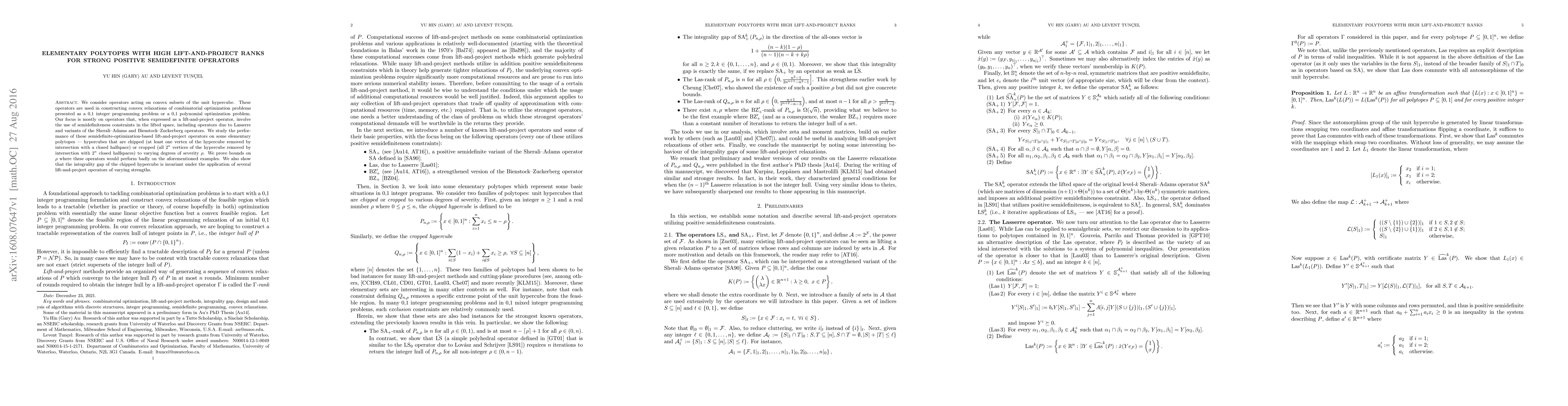 This paper investigates the performance of semidefinite-optimization-based lift-and-project operators on elementary polytopes derived from the unit hypercube, focusing on convex relaxations for combinatorial optimization problems. The study establishes bounds on the severity level where these operators fail, and reveals that the integrality gap of chipped hypercubes remains unchanged under various lift-and-project operators.