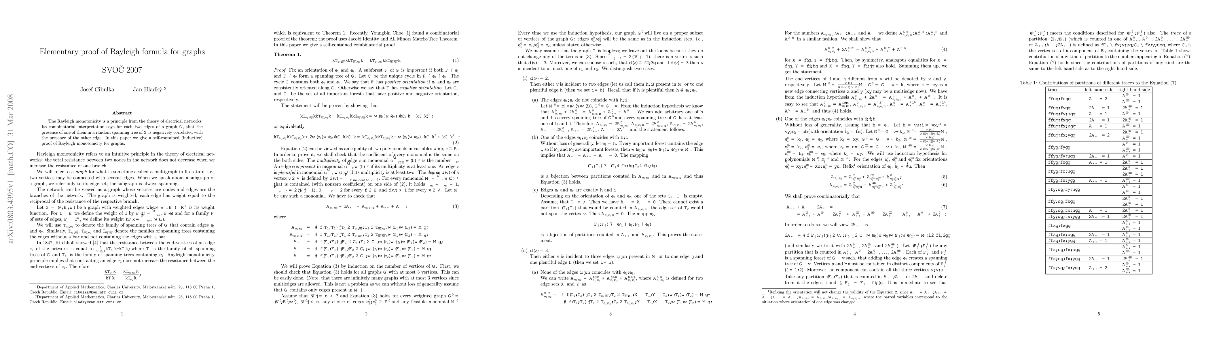 The Rayleigh monotonicity is a principle from the theory of electrical networks. Its combinatorial interpretation says for each two edges of a graph G, that the presence of one of them in a random spanning tree of G is negatively correlated with the presence of the other edge. In this paper we give a self-contained (inductive) proof of Rayleigh monotonicity for graphs.