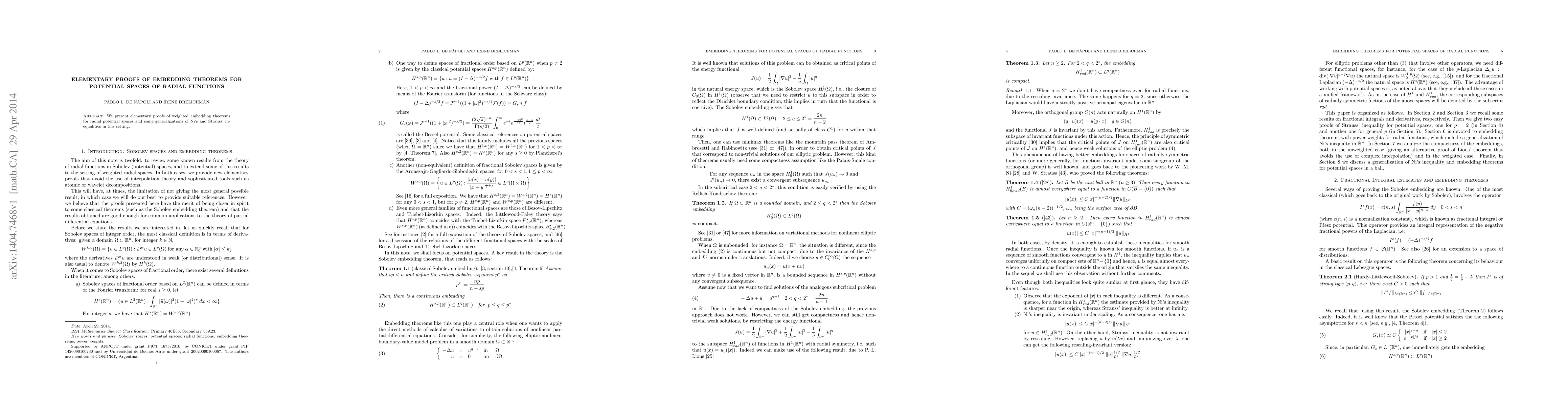 Summary: This paper provides straightforward proofs for weighted embedding theorems in radial potential spaces and extends Ni's and Strauss' inequalities within this context. The focus is on accessible and elementary mathematical techniques.