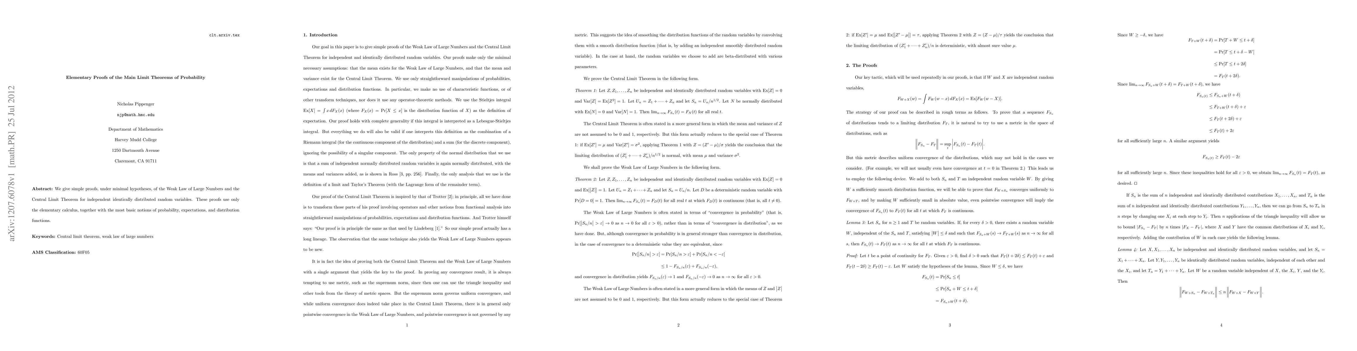 This paper provides simple proofs of the Weak Law of Large Numbers and Central Limit Theorem for independent random variables using basic calculus and probability concepts.