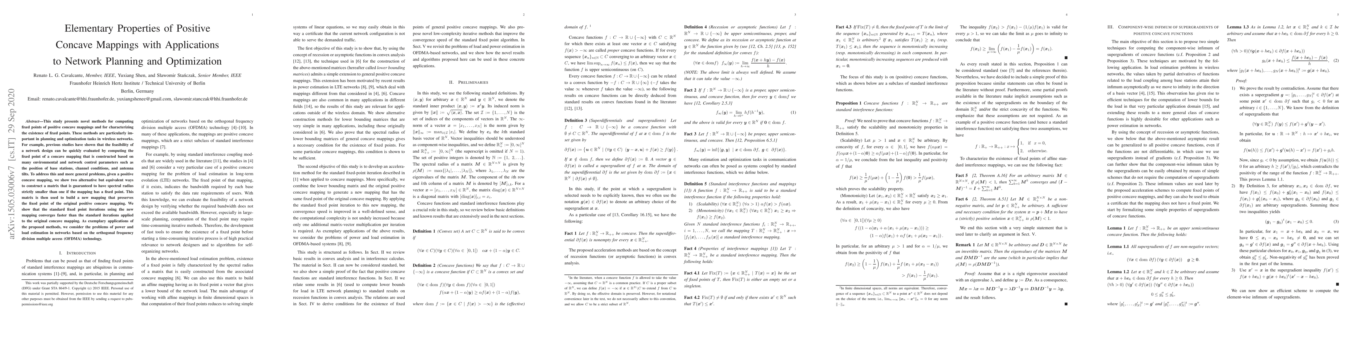This paper introduces novel methods for computing fixed points of positive concave mappings, crucial for network planning and optimization in wireless networks. It proposes two equivalent ways to construct a matrix ensuring faster convergence in fixed point iterations, demonstrating applications in power and load planning for OFDMA networks.