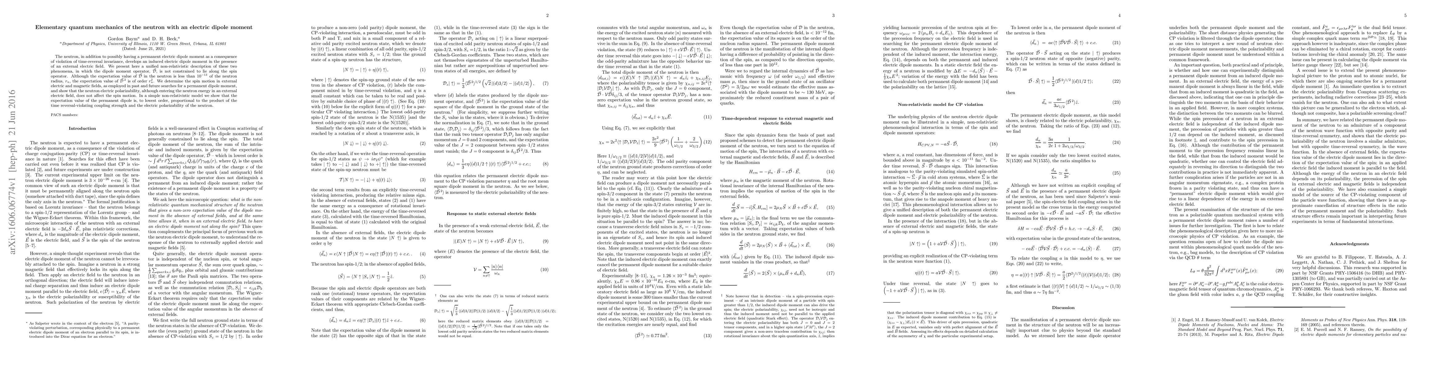 This paper provides a non-relativistic framework for understanding both the induced and permanent electric dipole moments of neutrons, showing that while the induced dipole moment is small, its squared expectation value is significant. It also demonstrates that the neutron's electric polarizability does not influence its spin motion in external fields.
