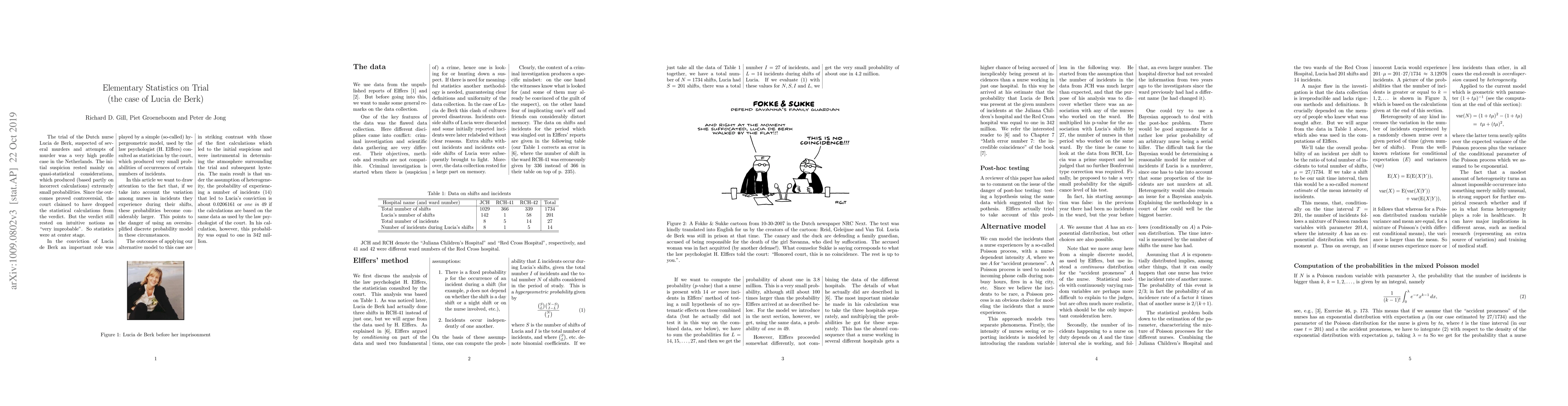 This paper critiques the use of a simple hypergeometric model in the Lucia de Berk case, highlighting that it underestimated the likelihood of certain incidents due to nurse-specific variations, thus warning against the oversimplification in statistical models used in legal contexts.