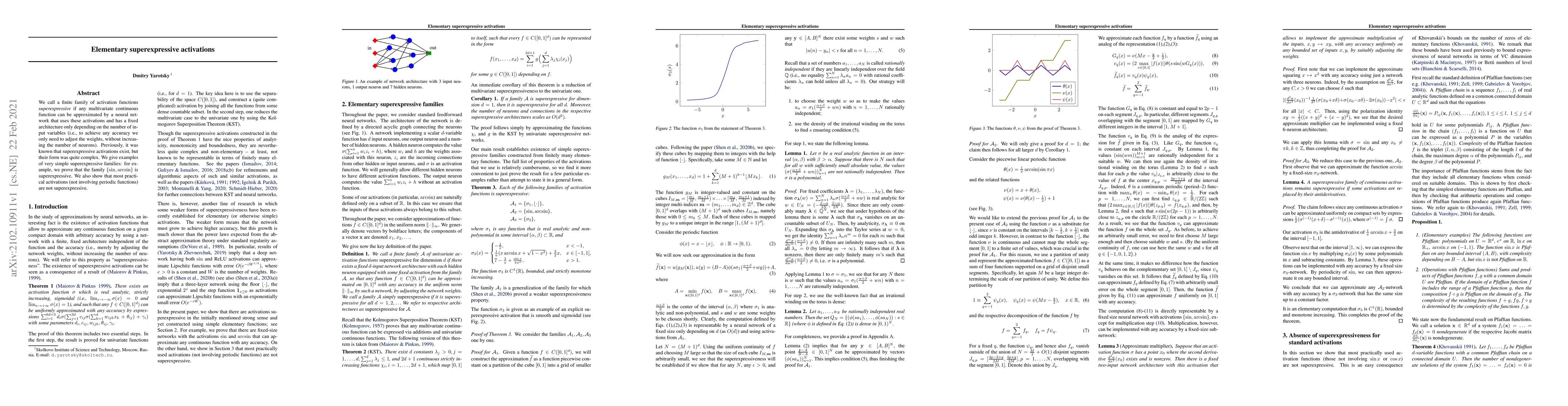 We call a finite family of activation functions superexpressive if any multivariate continuous function can be approximated by a neural network that uses these activations and has a fixed architecture only depending on the number of input variables (i.e., to achieve any accuracy we only need to adjust the weights, without increasing the number of neurons). Previously, it was known that superexpressive activations exist, but their form was quite complex. We give examples of very simple superexpressive families: for example, we prove that the family {sin, arcsin} is superexpressive. We also show that most practical activations (not involving periodic functions) are not superexpressive.