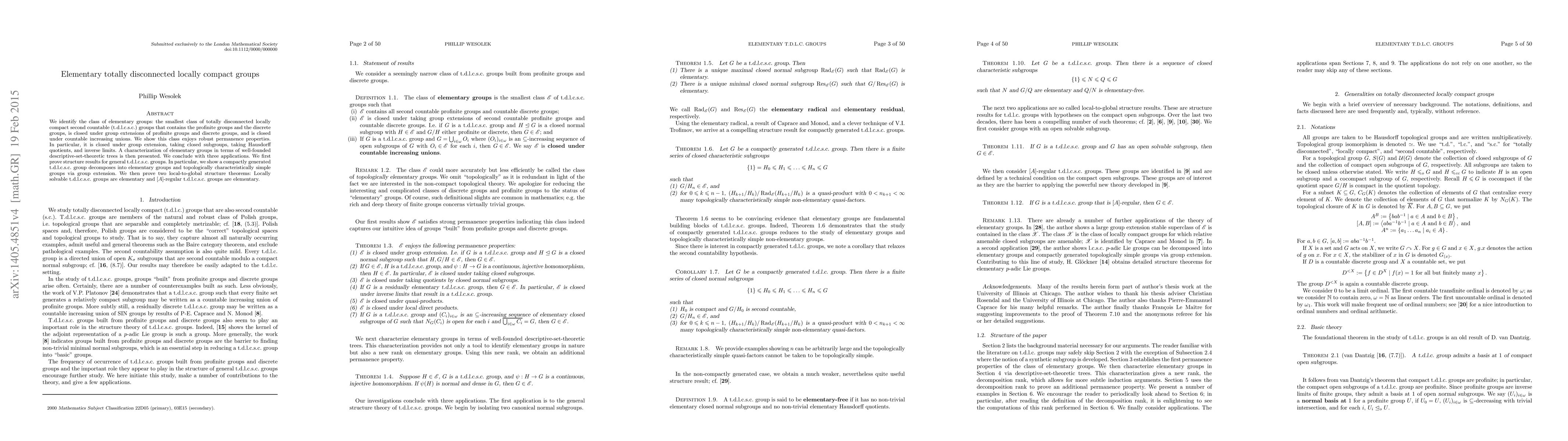 This paper identifies and characterizes a class of elementary totally disconnected locally compact groups, demonstrating their permanence under various group operations. It shows that elementary groups decompose general t.d.l.c.s.c. groups and proves local-to-global structure theorems for locally solvable and [A]-regular t.d.l.c.s.c. groups.
