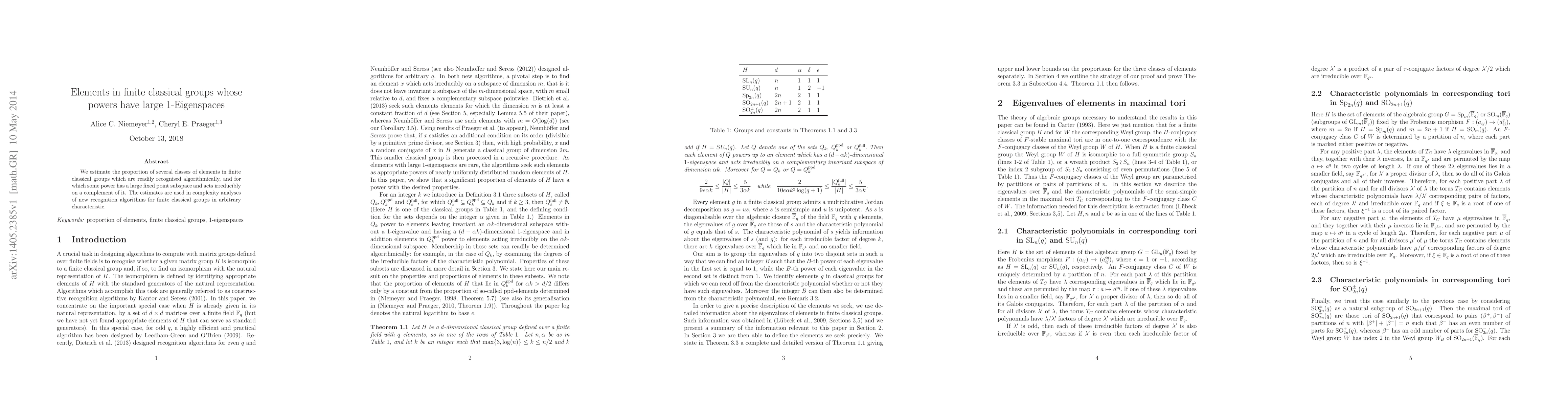 This paper estimates the proportion of specific classes of elements in finite classical groups whose powers have large fixed point subspaces, aiding in the development of new recognition algorithms for these groups. The results are applied to improve the complexity analyses of these algorithms across various characteristics.