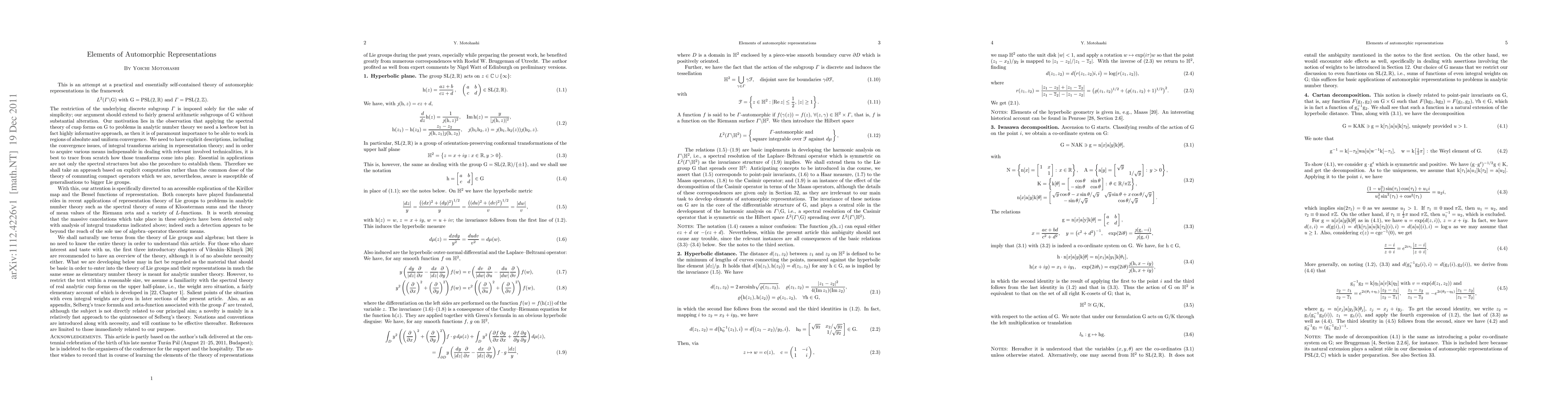 This is an attempt at a practical and essentially self-contained theory of automorphic representations in the framework $$\hbox{$L^2(\varGamma\backslash\r{G})$ with $\r{G}=\r{PSL}(2,\B{R})$ and $\varGamma=\r{PSL}(2,\B{Z})$.}$$