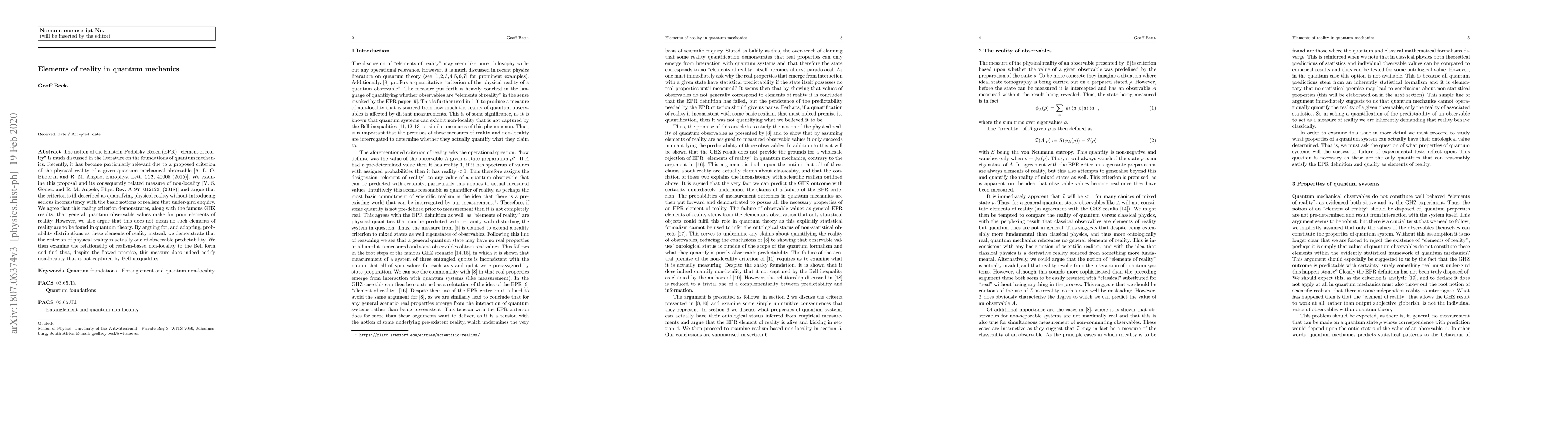 The notion of the Einstein-Podolsky-Rosen (EPR) "element of reality" is much discussed in the literature on the foundations of quantum mechanics. Recently, it has become particularly relevant due to a proposed criterion of the physical reality of a given quantum mechanical observable [A. L. O. Bilobran and R. M. Angelo, Europhys. Lett. 112, 40005 (2015)]. We examine this proposal and its consequently related measure of non-locality [V. S. Gomez and R. M. Angelo, Phys. Rev. A 97, 012123, (2018)] and argue that the criterion is ill-described as quantifying physical reality without introducing serious inconsistency with the basic notions of realism that under-gird enquiry. We agree that this reality criterion demonstrates, along with the famous GHZ results, that general quantum observable values make for poor elements of reality. However, we also argue that this does not mean no such elements of reality are to be found in quantum theory. By arguing for, and adopting, probability distributions as these elements of reality instead, we demonstrate that the criterion of physical reality is actually one of observable predictability. We then examine the relationship of realism-based non-locality to the Bell form and find that, despite the flawed premise, this measure does indeed codify non-locality that is not captured by Bell inequalities.