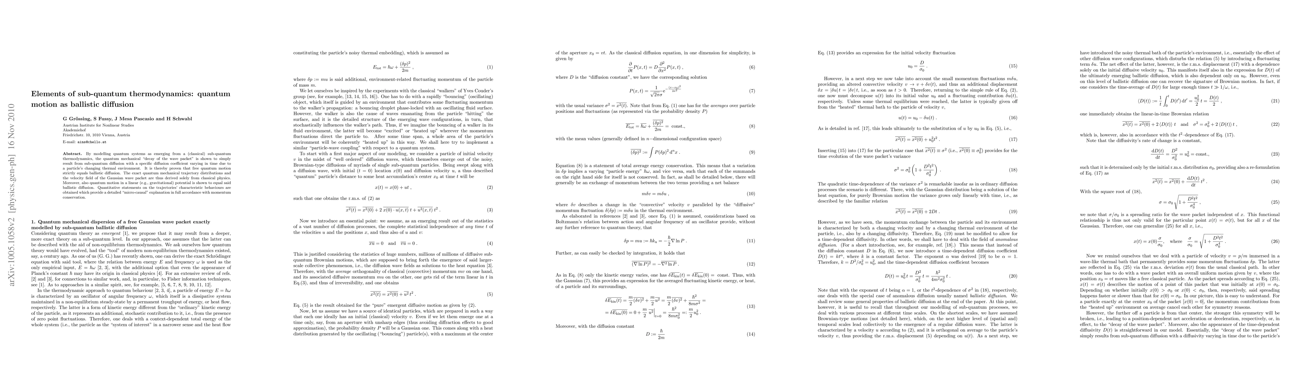 A new study shows that quantum motion can be explained by ballistic diffusion from a sub-quantum thermodynamics framework, providing a classical physics-based explanation for the behavior of quantum systems.