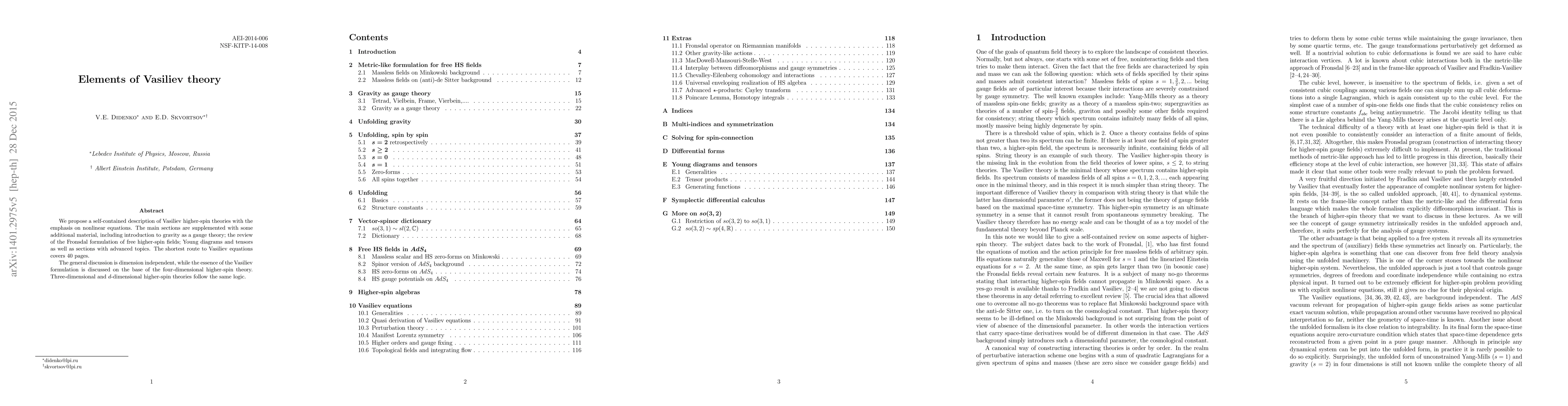 We propose a self-contained description of Vasiliev higher-spin theories with the emphasis on nonlinear equations. The main sections are supplemented with some additional material, including introduction to gravity as a gauge theory; the review of the Fronsdal formulation of free higher-spin fields; Young diagrams and tensors as well as sections with advanced topics. The shortest route to Vasiliev equations covers 40 pages. The general discussion is dimension independent, while the essence of the Vasiliev formulation is discussed on the base of the four-dimensional higher-spin theory. Three-dimensional and $d$-dimensional higher-spin theories follow the same logic.