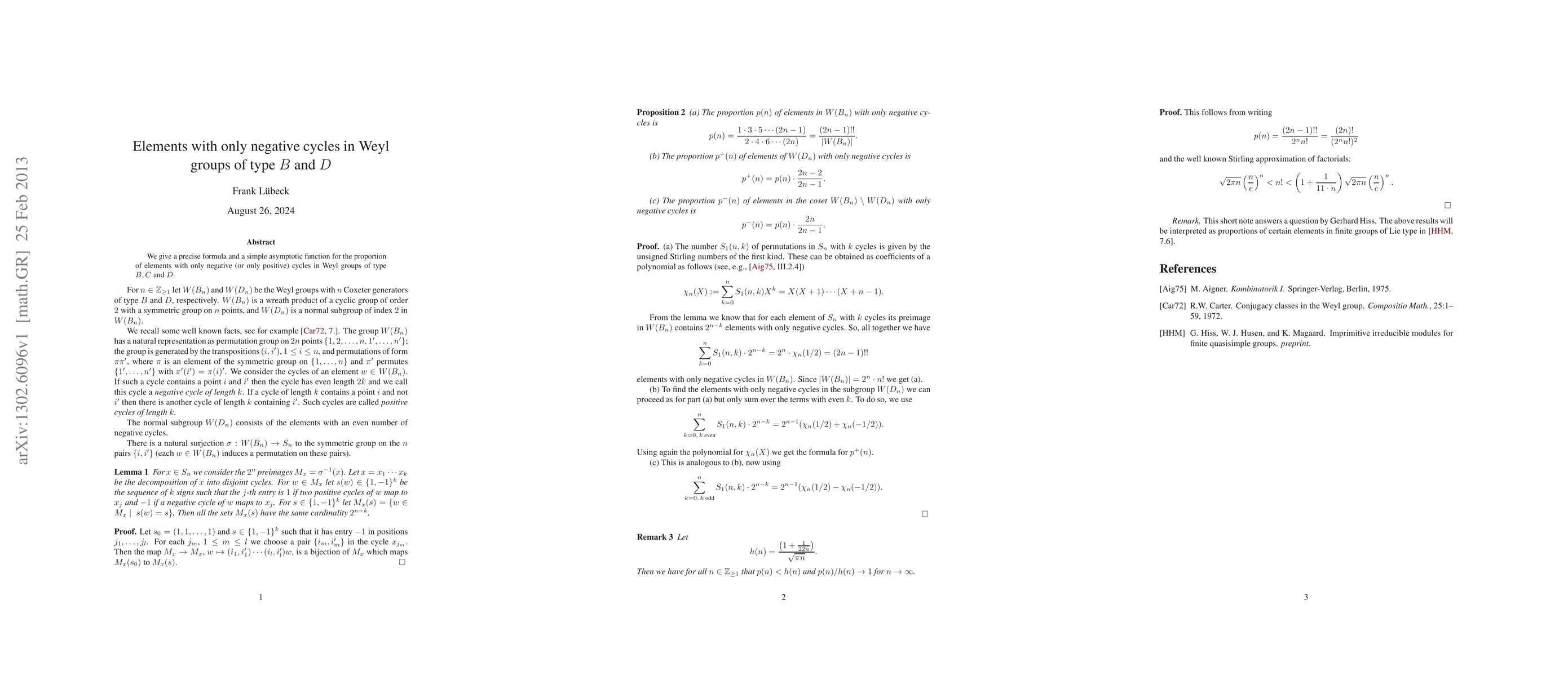 We give a precise formula and a simple asymptotic function for the proportion of elements with only negative (or only positive) cycles in Weyl groups of type $B,C$ and $D$.