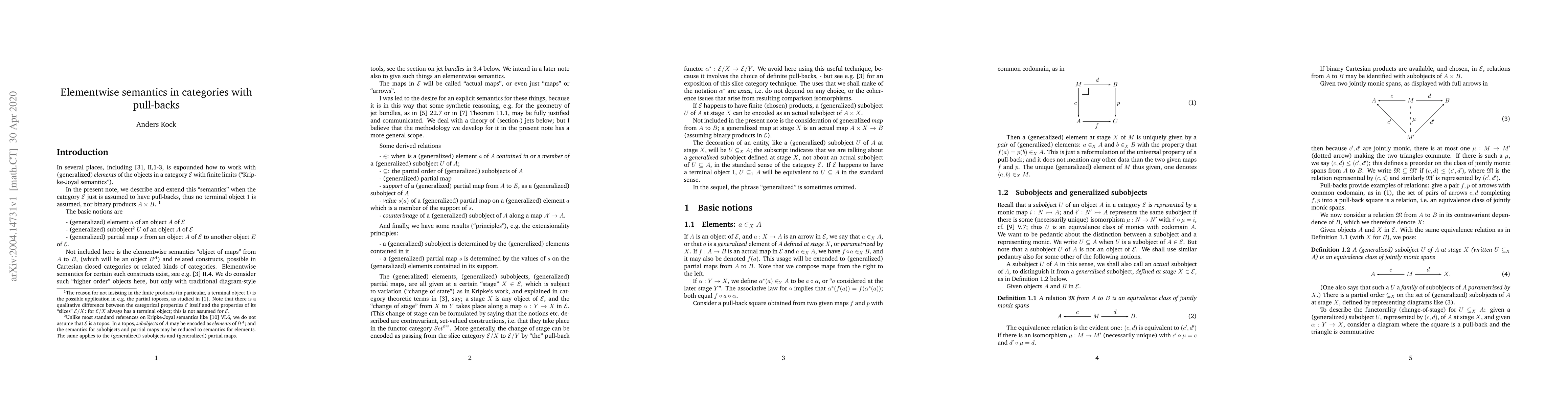 This paper extends "Kripke-Joyal" reasoning to categories with pull-backs to develop a theory of jets, providing new insights into elementwise semantics within these mathematical structures.