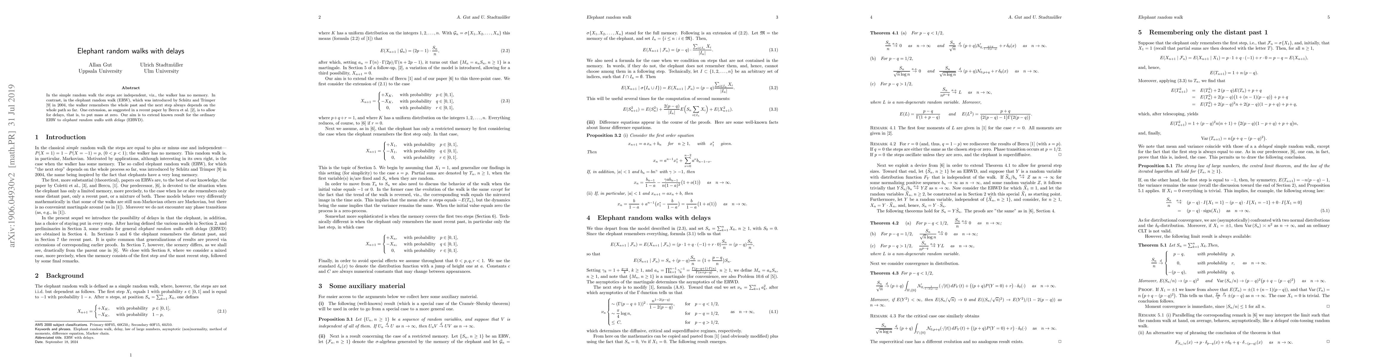 This paper extends the Elephant Random Walk (ERW) to include delays, termed Random Walk With Delays (ERWD), where the walker's next step depends on the entire past path and incorporates a delay mechanism. The study aims to generalize existing results for ERW to this new model.