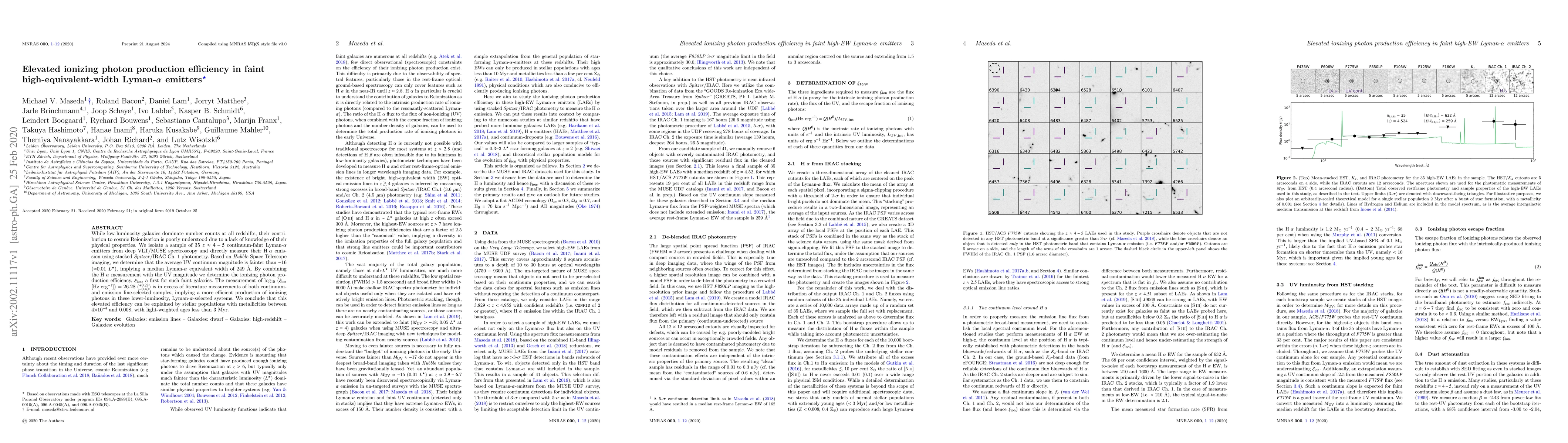 This study identifies faint high-equivalent-width Lyman-alpha emitters at z~4-5, revealing an elevated ionizing photon production efficiency (log xi_ion = 26.28) compared to other galaxy samples, suggesting these low-luminosity galaxies play a significant role in cosmic reionization. The elevated efficiency is attributed to young, metal-poor stellar populations.