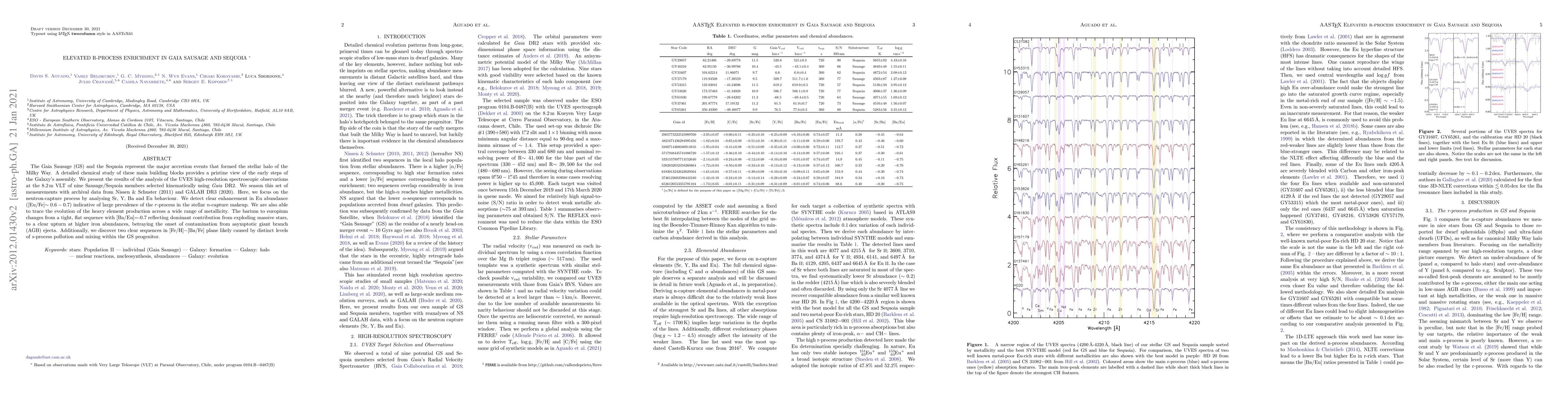 The Gaia Sausage (GS) and the Sequoia represent the major accretion events that formed the stellar halo of the Milky Way. A detailed chemical study of these main building blocks provides a pristine view of the early steps of the Galaxy's assembly. We present the results of the analysis of the UVES high-resolution spectroscopic observations at the 8.2m VLT of 9 Sausage/Sequoia members selected kinematically using Gaia DR2. We season this set of measurements with archival data from Nissen & Schuster (2011) and GALAH DR3 (2020). Here, we focus on the neutron-capture process by analysing Sr, Y, Ba and Eu behavior. We detect clear enhancement in Eu abundance ([Eu/Fe]~0.6-0.7) indicative of large prevalence of r-process in the stellar n-capture makeup. We are also able to trace the evolution of the heavy element production across a wide range of metallicity. The barium to europium changes from a tight, flat sequence with [Ba/Eu]=-0.7 reflecting dominant contribution from exploding massive stars, to a clear upturn at higher iron abundances, betraying the onset of contamination from asymptotic giant branch (AGB) ejecta. Additionally, we discover two clear sequences in [Fe/H]-[Ba/Fe] plane likely caused by distinct levels of s-process pollution and mixing within the GS progenitor.