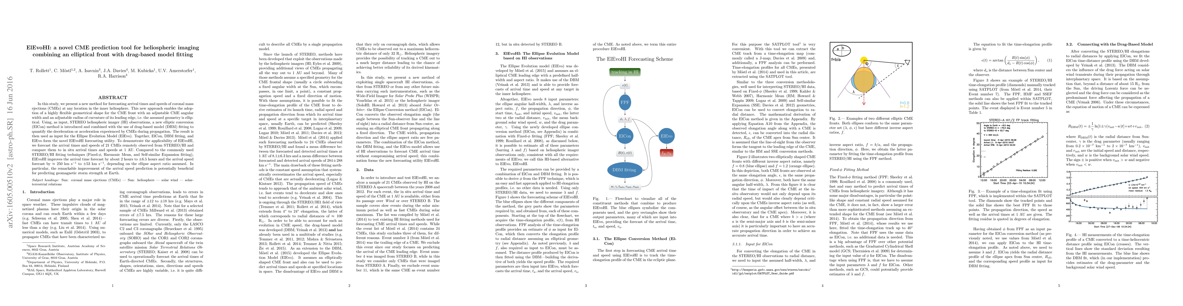 This paper introduces ElEvoHI, a novel tool for predicting the arrival times and speeds of coronal mass ejections (CMEs) in the inner heliosphere, using an elliptical front model and drag-based model fitting. ElEvoHI improves arrival time and speed forecasts compared to existing methods, enhancing the prediction of geomagnetic storm strength at Earth.