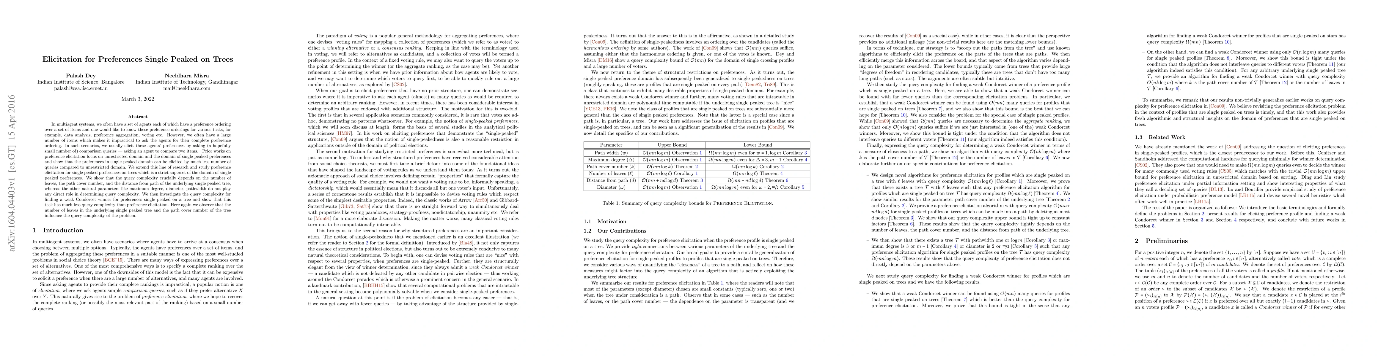 This paper studies preference elicitation for single peaked preferences on trees, demonstrating that query complexity depends on the number of leaves and path cover number, rather than other tree parameters. It also investigates the query complexity for finding a weak Condorcet winner, showing similar dependency on the number of leaves and path cover number.