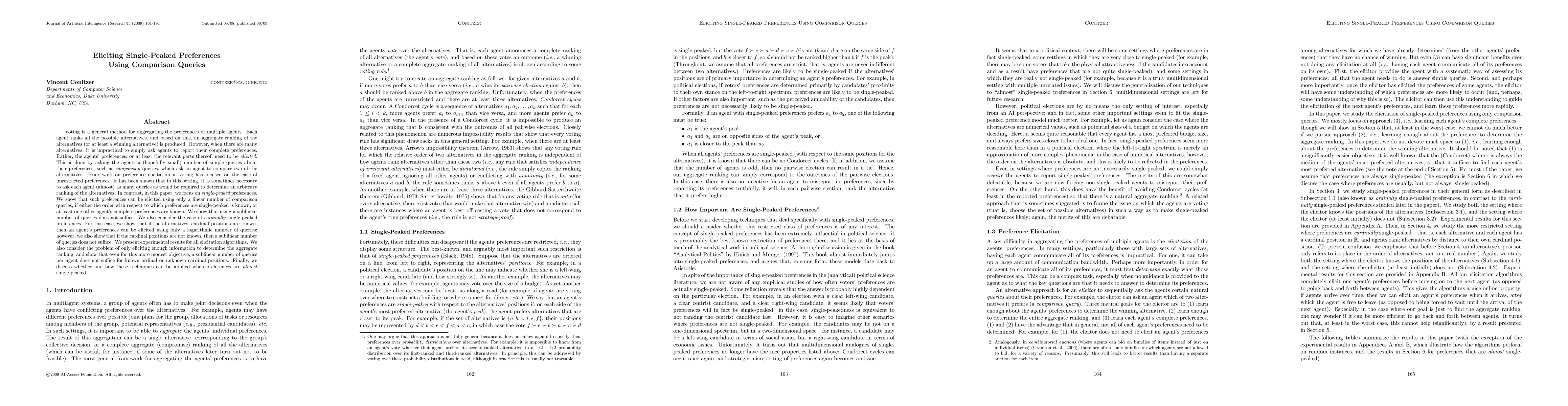 This paper investigates the efficient elicitation of single-peaked preferences through comparison queries, demonstrating that linear or logarithmic queries suffice when certain information is known, while sublinear queries are insufficient. Experimental results validate the proposed algorithms.
