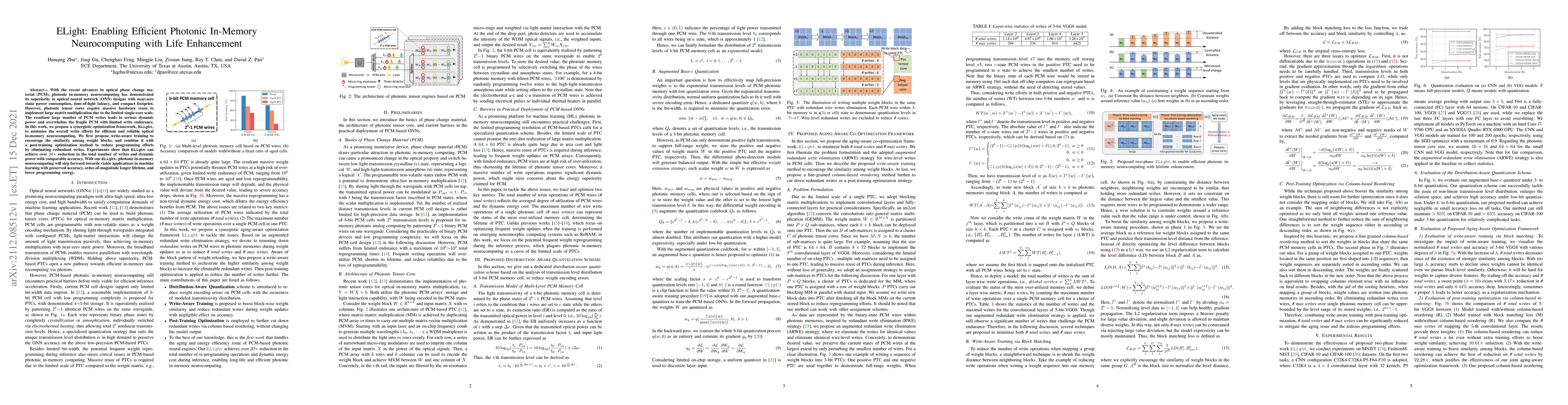 ELight optimizes photonic in-memory neurocomputing by minimizing write efforts through write-aware training and post-training optimization, achieving over 20X reduction in writes and dynamic power while maintaining accuracy. This approach enhances the viability of optical neural networks for machine learning applications.