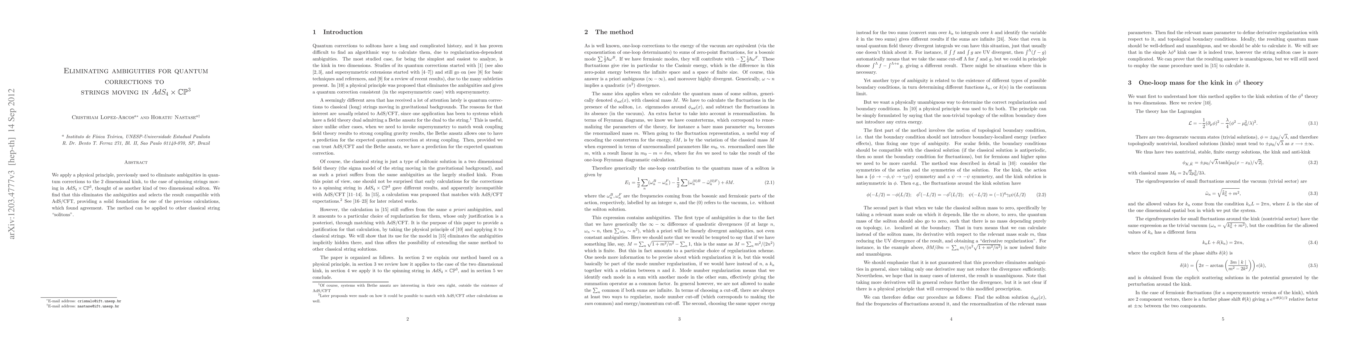 We apply a physical principle, previously used to eliminate ambiguities in quantum corrections to the 2 dimensional kink, to the case of spinning strings moving in $AdS_4\times \mathbb{CP}^3$, thought of as another kind of two dimensional soliton. We find that this eliminates the ambiguities and selects the result compatible with AdS/CFT, providing a solid foundation for one of the previous calculations, which found agreement. The method can be applied to other classical string "solitons".