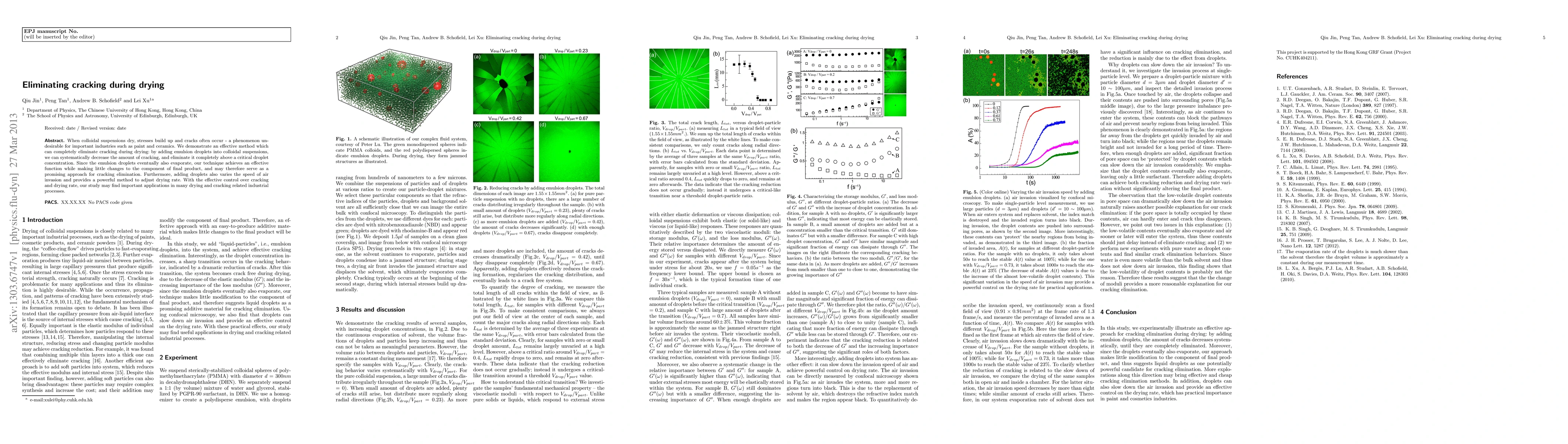 This research presents a method to eliminate cracking during drying of colloidal suspensions by incorporating emulsion droplets, which reduces cracking and can completely prevent it at a critical droplet concentration. This technique adjusts the drying rate and has potential applications in paint and ceramics industries.