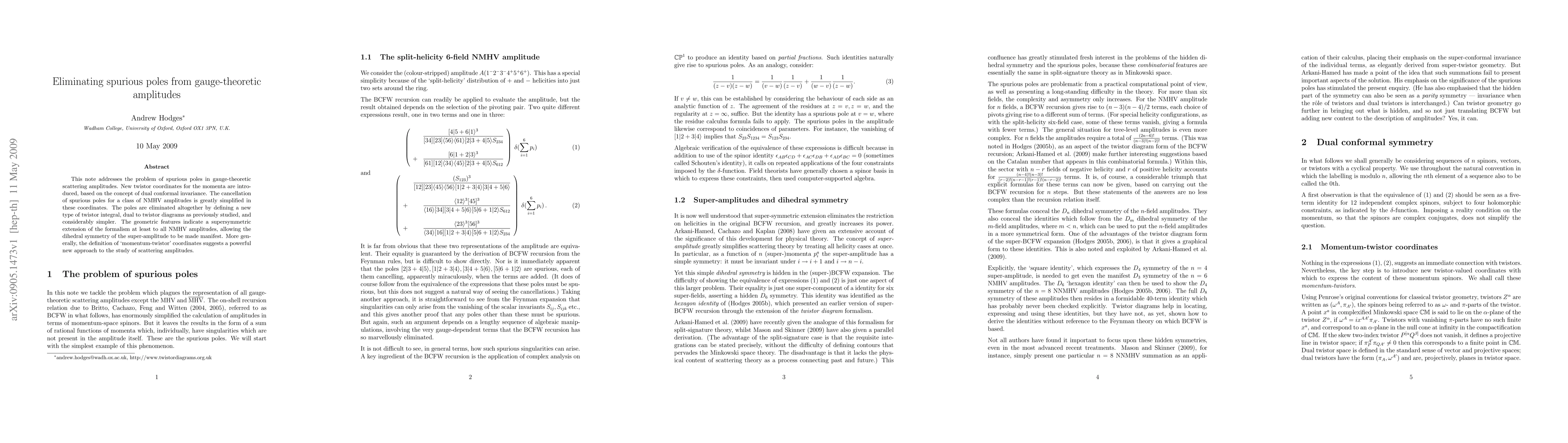 This note addresses the problem of spurious poles in gauge-theoretic scattering amplitudes. New twistor coordinates for the momenta are introduced, based on the concept of dual conformal invariance. The cancellation of spurious poles for a class of NMHV amplitudes is greatly simplified in these coordinates. The poles are eliminated altogether by defining a new type of twistor integral, dual to twistor diagrams as previously studied, and considerably simpler. The geometric features indicate a supersymmetric extension of the formalism at least to all NMHV amplitudes, allowing the dihedral symmetry of the super-amplitude to be made manifest. More generally, the definition of `momentum-twistor' coordinates suggests a powerful new approach to the study of scattering amplitudes.